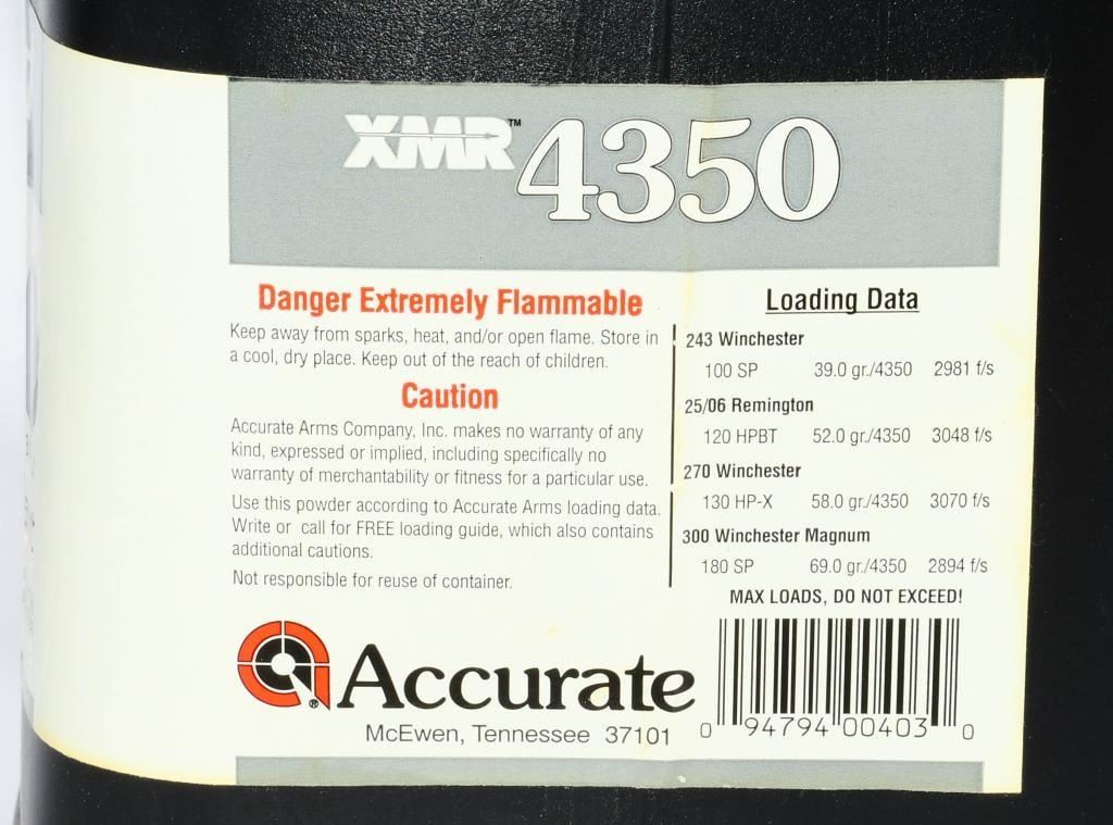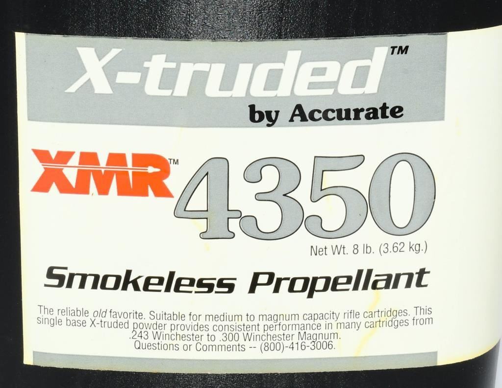 8 LB Container Of X-Truded 4350 XMR Gun Powder Note Containers is Approx Half Full Weighs Approx 4 Lbs 11 Oz With more than 30 years in the business people trust Accurate Powder 4350 Rifle Powder. As with other powders manufactured by the company this smokeless option undergoes intense engineering and lab testing to ensure precision and performance are optimal. The 4350 formula is a single-base short-cut extruded powder used for rifle shooting. Highly versatile this powder can be used in various cartridges including the .338 Winchester Magnum and .243 Winchester. However it is also an outstanding choice for the .280 Remington 6mm Remington and .300 Smith & Wesson. Because the powder meters accurately it is perfect for repeated consistency.