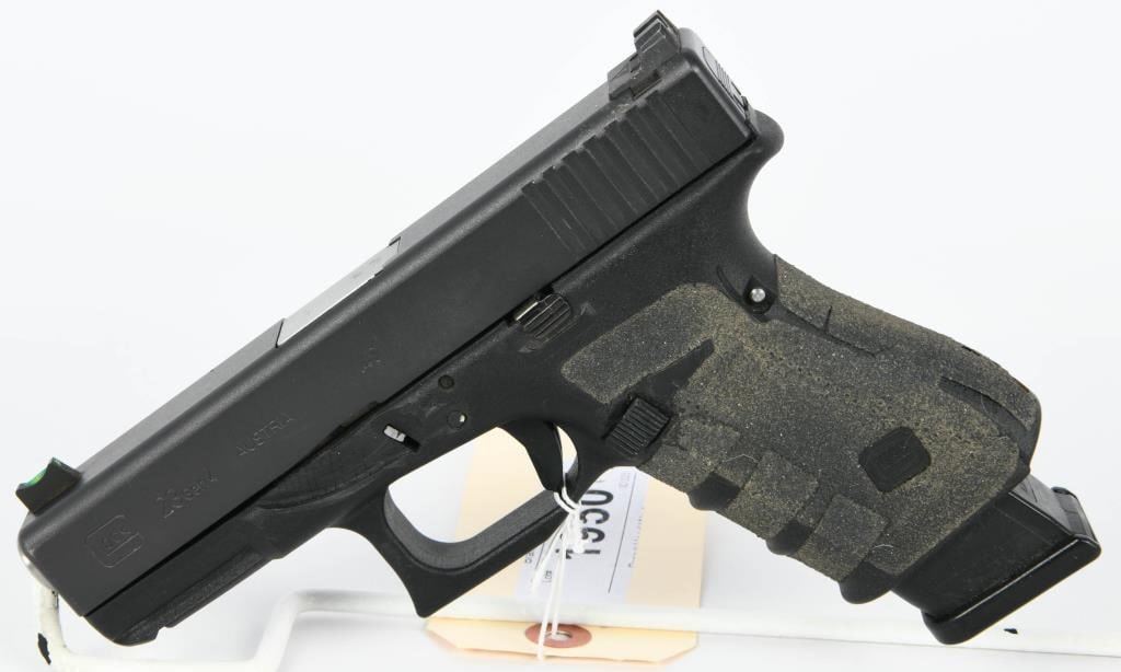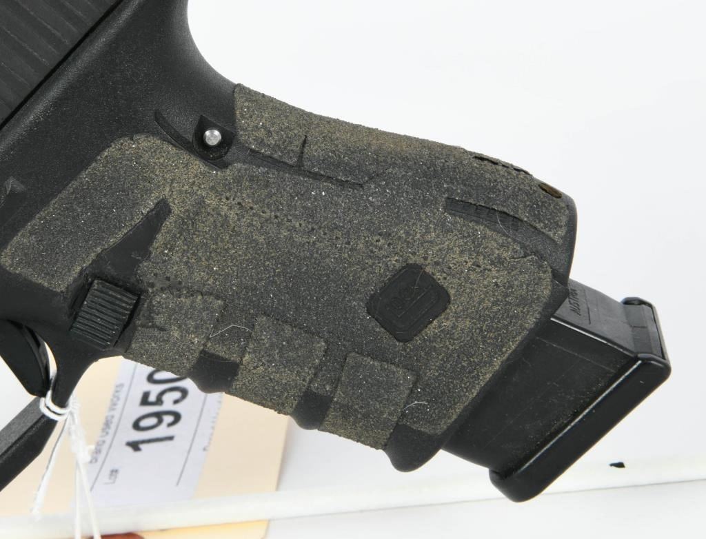 On auction is the Glock G23 Gen4 Semi Auto Pistol, designed with precision and chambered in 9MM. This versatile sidearm stands out with aftermarket enhancements, making it an ideal choice for those seeking customization. Included with the Glock G23 Gen4: The pistol comes equipped with an aftermarket barrel, elevating its performance and providing a unique touch to your shooting experience. This addition enhances accuracy and reliability, ensuring that each shot meets your expectations. Experience improved handling and control with the included grip tape kit. Customizable to fit your preferences, this kit adds a personalized touch to the firearm, enhancing your overall shooting comfort and precision. The package also includes a magazine marked for .40 S&W. This versatility allows you the option to interchangeably use both 9MM and .40 S&W ammunition, providing flexibility to adapt to different shooting scenarios. This Glock G23 Gen4 is in great condition, ready to meet the demands of discerning firearm enthusiasts. Bid confidently on this customized pistol, and elevate your shooting experience with its enhanced features. Please be aware of the firearm laws and regulations in your area, and bid responsibly. Secure this Glock G23 Gen4 with aftermarket additions and make it a valuable addition to your collection.