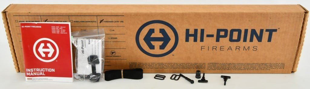 Up Next We Have a Brand New Hi-Point Carbine Semi Auto Rifle Chambered in .45 ACP, 17.5" Barrel, One 9 Round Magazine, Polymer Stock, Black, 4595TS, and Comes in The Factory Box With Paperwork and Accessories. More From The Internet Below: When it comes to American Made Semi Auto Rifle that are reliable and as durable as they come, the Hi-Point Carbine Semi Auto Rifle has to be included on the short list of considerations. The Hi-Point Carbine Semi Auto Rifle is well made utilizing quality components and a versatile design offering shooters incredible performance at a very reasonable price point. Hi-Point Carbines are built to run and once broken they are just about unstoppable. Don't fall victim to the misconception that quality has to cost you an arm and a leg, pick up an American Made Hi-Point Carbine Semi Auto Rifle today and discover what the hype is all about. Specifications and Features: Hi-Point Carbine semi auto rifle 4595TS 17.5" Barrel .45 ACP 9 shot magazine Adjustable peep sight All-weather molded black polymer skeletonized stock Sling, swivels and scope base Internal recoil buffer in stock Quick on/off thumb safety Grip-mounted clip release 100% American-made parts and assembly Last round lock open Weaver Style Rails 32" Overall Length 7 lbs