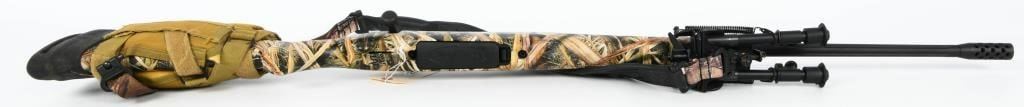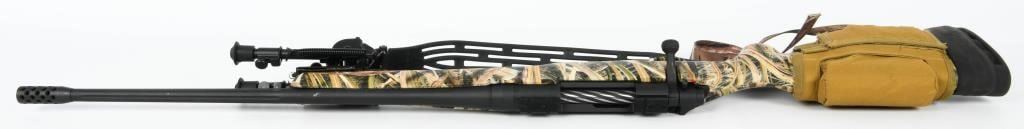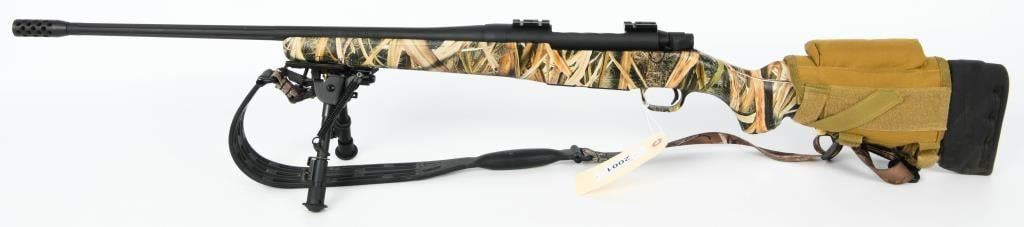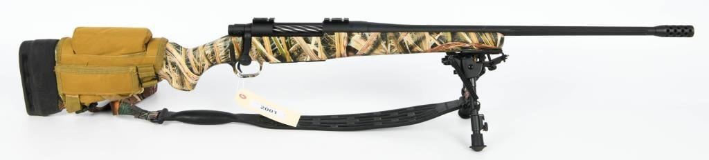 Now on auction is the Mossberg Patriot Bolt Action Rifle, chambered in .300 Win Mag. This rifle boasts a heavy fluted barrel with a muzzle brake, providing enhanced accuracy and recoil reduction. Additionally, it features a two-piece scope base for optics, a cheek pad for improved comfort, and comes equipped with a bipod and sling. The rifle is adorned in a camo print and appears to be in great condition. The Mossberg Patriot series is known for its reliability and accuracy, and this .300 Win Mag variant is suitable for a variety of purposes, including long-range shooting and big game hunting. The heavy fluted barrel, muzzle brake, and two-piece scope bases enhance the rifle's performance, making it a versatile choice for shooters who prioritize precision. The addition of a cheek pad, bipod, and sling further contribute to the rifle's functionality and ease of use. Bid confidently on this Mossberg Patriot Bolt Action Rifle, and ensure compliance with all applicable firearm laws and regulations. Whether for hunting or long-range shooting, this rifle offers a combination of features that make it a valuable addition to any collection or shooting arsenal.
