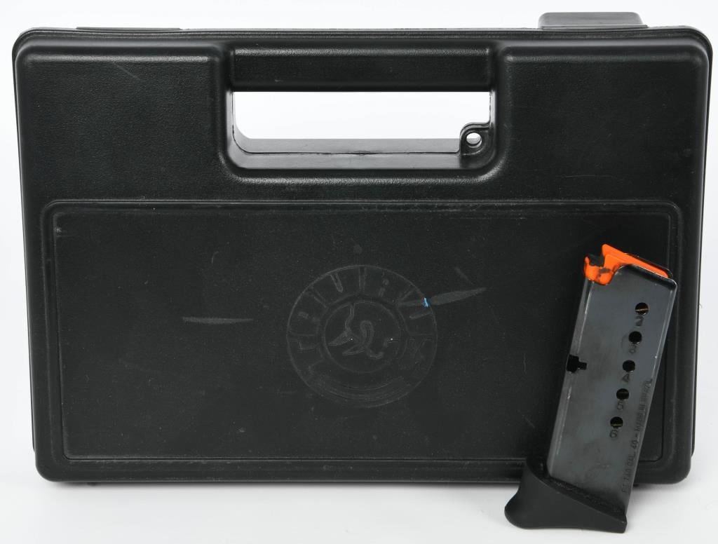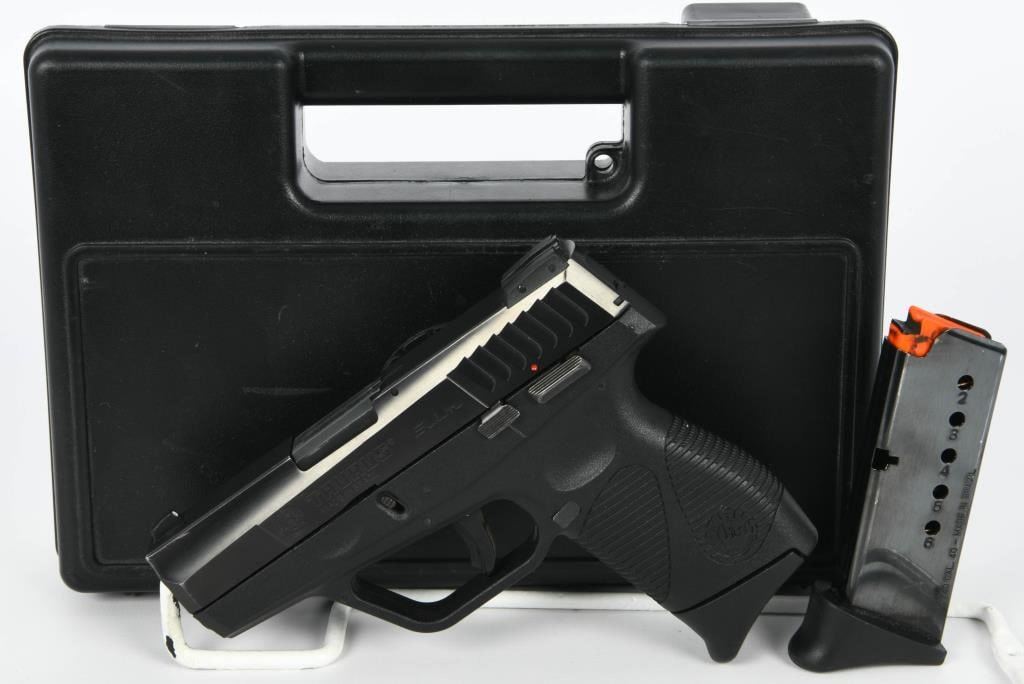 Now available for auction is the Taurus PT 740 Slim Semi Auto Pistol, chambered in .40 S&W. This pistol comes in the factory hard case with two magazines and is described as appearing in excellent condition. The black on black design adds to its sleek and tactical appearance. The Taurus PT 740 Slim is known for its compact design and chambering in the powerful .40 S&W caliber. It is designed for concealed carry and offers a balance of firepower and concealability. This particular pistol is presented in excellent condition, indicating that it has been well-maintained and cared for. The inclusion of the factory hard case and two magazines adds to the overall completeness of the auction item. Bid with confidence on this Taurus PT 740 Slim, a reliable and compact option for concealed carry or general use. As always, ensure compliance with all firearm laws and regulations in your area and bid responsibly to secure this quality firearm for your collection or personal use.