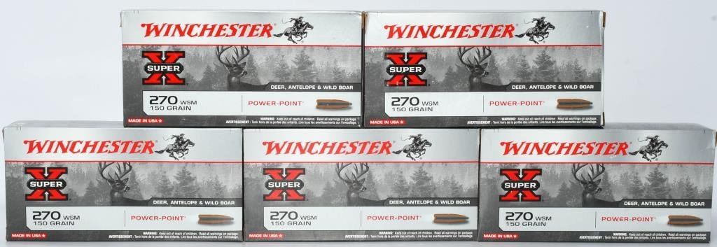 Immerse yourself in precision and power with our exclusive auction featuring 100 rounds of Winchester .270 WSM Ammunition. Each round showcases the formidable 150 Grain Power Point projectiles, emblematic of Winchester's Super-X Ammo crafted in the USA. Renowned for its reliability and consistent performance, this ammunition is designed for versatility and stopping power. The .270 WSM caliber is celebrated for its long-range capabilities, making this collection an ideal choice for hunting and various shooting applications. Before participating in the auction, ensure awareness of local and state laws governing ammunition and accessories. Bid confidently, knowing you are vying for a substantial collection of Winchester ammunition, recognized for its quality and impact. Secure this lot and experience the unmatched power and precision of the 150 Grain Power Point rounds. Happy bidding, and may the winning bid bring home this top-tier Winchester .270 WSM Ammunition, elevating your shooting experience with each meticulously crafted round. Get your bid on and seize the opportunity to own this substantial collection.
