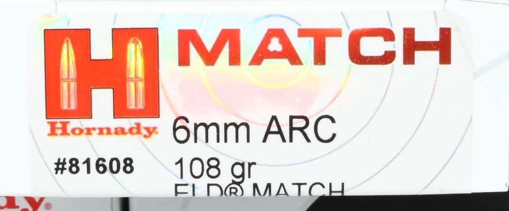 Lot 2110 100 Rounds Of Hornady Match 6mm ARC Ammunition
