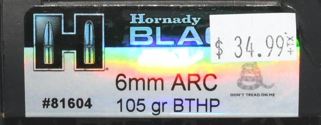 Lot 2125 80 Rounds Hornady BLACK 6mm ARC Ammunition