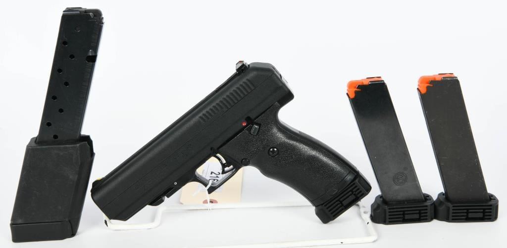 Up for auction is the Hi-Point JHP Semi Auto Pistol, chambered in .45 ACP. This pistol includes a total of four magazines, with one of them being a high-capacity magazine. It's crucial to be aware of and comply with firearm laws and regulations regarding magazine capacity in your jurisdiction. The Hi-Point JHP in .45 ACP is known for being a budget-friendly option with reliable performance. The inclusion of four magazines, including one high-capacity magazine, adds versatility to your shooting experience. Please ensure that you are well-versed in the firearm laws specific to your location, particularly those pertaining to magazine capacity. Bid responsibly, and make sure that your ownership and use of this Hi-Point JHP comply with all applicable regulations in your area.