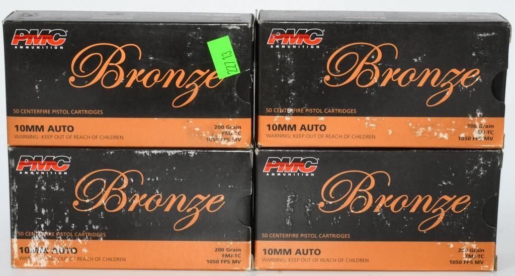 Acquire 200 rounds of PMC Bronze 10mm ammunition, featuring reliable 200-grain Full Metal Jacket Total Copper (FMJ TC) bullets. PMC Bronze is known for its consistent performance and quality manufacturing, making it a popular choice for various shooting applications. The 200-grain FMJ TC construction ensures smooth feeding and reliable cycling in your 10mm firearms. Whether you're at the range for practice or engaging in training sessions, PMC Bronze ammo delivers consistent accuracy and performance. Bid confidently on this opportunity to acquire 200 rounds of PMC Bronze 10mm ammunition, enhancing your shooting experience with high-quality, full metal jacket TC rounds. Note: Please ensure compliance with local and state regulations regarding the purchase and possession of ammunition.