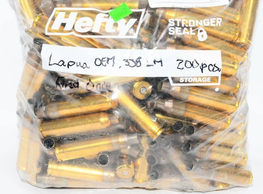 Lot 1406 Approx 200 Ct Empty Lapua .338 LM Brass Casings
