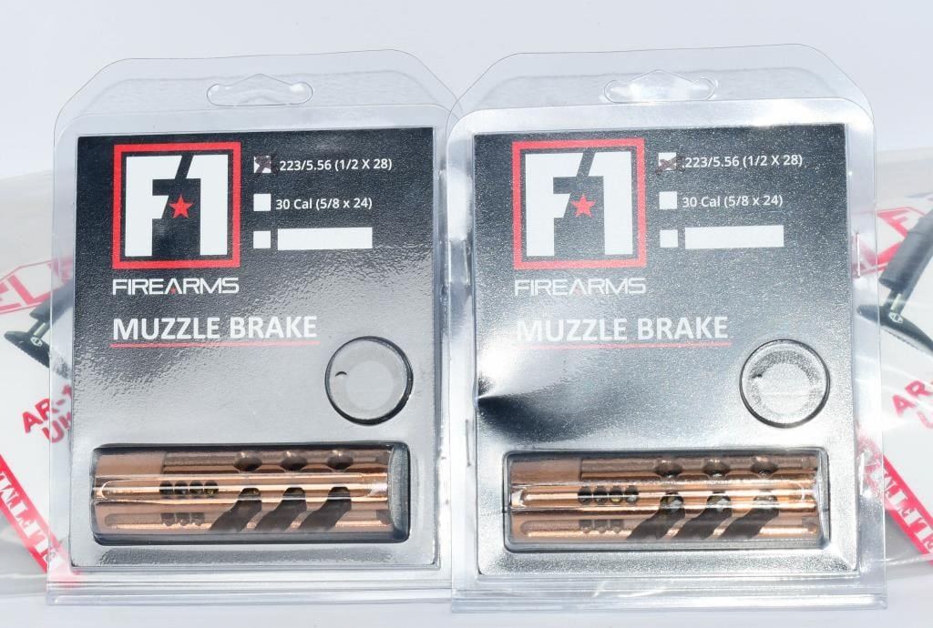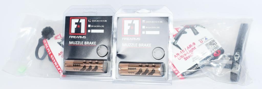Brakes; Greetings, firearm enthusiasts! We've got a fantastic duo up for grabs ? two brand-new, in-package AR-15/AR-9 Ultra-Light Stocks and Muzzle Brakes. Upgrade your rifle with these top-notch components that promise both performance and style. Ultra-Light Stocks: Experience the perfect balance of strength and weight reduction with these Ultra-Light Stocks. Crafted with precision, they offer excellent durability without compromising on comfort. The ergonomic design ensures a snug fit, contributing to improved handling and reduced fatigue during extended shooting sessions. Muzzle Brakes: Maximize your shooting experience with these cutting-edge Muzzle Brakes. Designed for effective recoil reduction and muzzle rise control, they provide faster follow-up shots and increased overall accuracy. The sleek design adds a touch of sophistication to your firearm while enhancing its performance. Both stocks and muzzle brakes come sealed in their original packaging, ready to be added to your arsenal. Whether you're a seasoned shooter or just getting started, these upgrades are sure to elevate your AR game. Bid now to secure this dynamic combination of two NIP AR-15/AR-9 Ultra-Light Stocks and Muzzle Brakes. Take your rifle to the next level and enjoy improved handling, reduced recoil, and enhanced precision. Don't miss out ? place your bid today and gear up for an unparalleled shooting experience! Good luck, bidders!