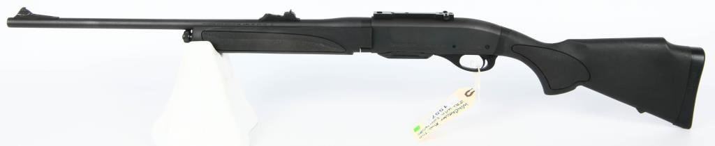 Ladies and gentlemen, distinguished bidders, and rifle enthusiasts, prepare to be captivated by the Remington Woodmaster Model 750, a semi-auto marvel chambered in the venerable .270 Winchester. This black-on-black beauty is adorned with a synthetic stock, exuding both style and functionality. Equipped with a scope base, this rifle is optics-ready, allowing you to tailor your shooting experience to perfection. The auction spotlight is now on this Remington masterpiece, and it comes ready for action with a single accompanying magazine. Bid boldly, bid wisely, and let the auction excitement unfold for this Remington Woodmaster Model 750. It's not just a rifle; it's a ticket to precision and performance in the shooting arena. Get ready to place your bids!