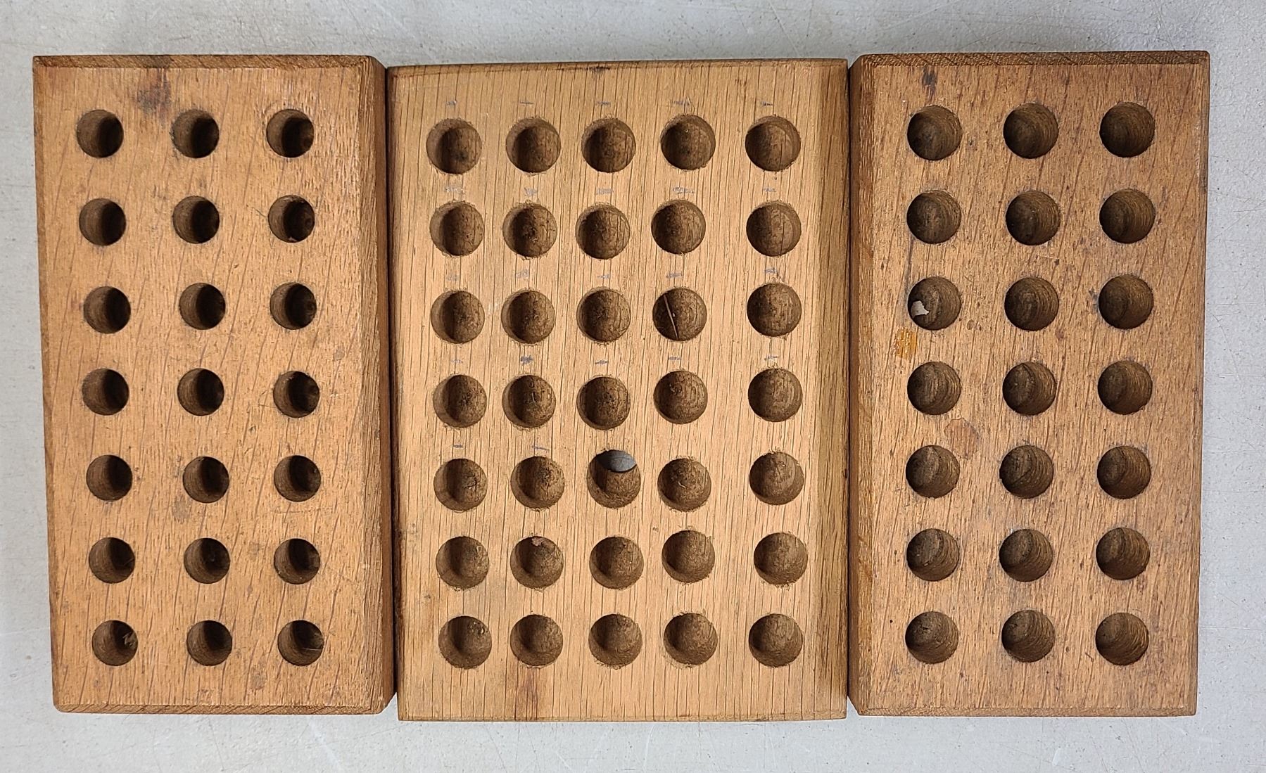 Lot 410 Wooden Reloading Bullet / Casing Blocks x 3 - 45 Cal and 38 Spec