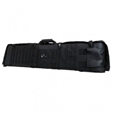 Outside features: Heavy Duty zippers, adjustable compression straps with quick connect plastic buckles, wrap around carry handle straps, MOLLE webbing sewn to one side to attach other MOLLE compatible gear to the case, ID Card window, a drag strap that stores in its own hook and loop compartment, 1” webbing sewn to the backside to re-enforce when dragging the Rifle Case along the ground, extended zipper flaps help keep debris and some weather from entering through zippers.