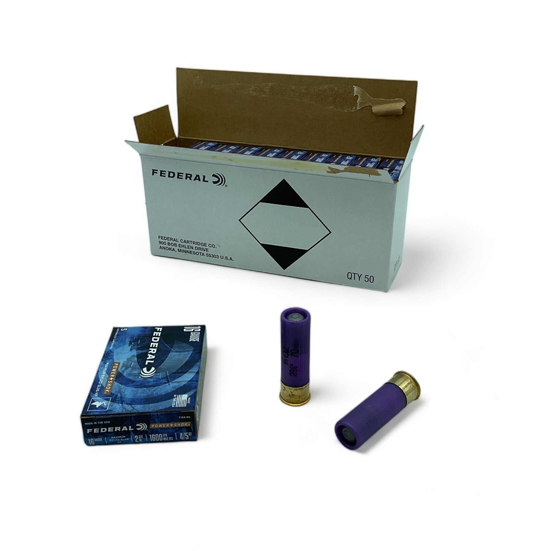 Lot 2036 Federal Power Shok 16 Ga 2 3/4" Rifled Slug Ammunition, 50 Rounds