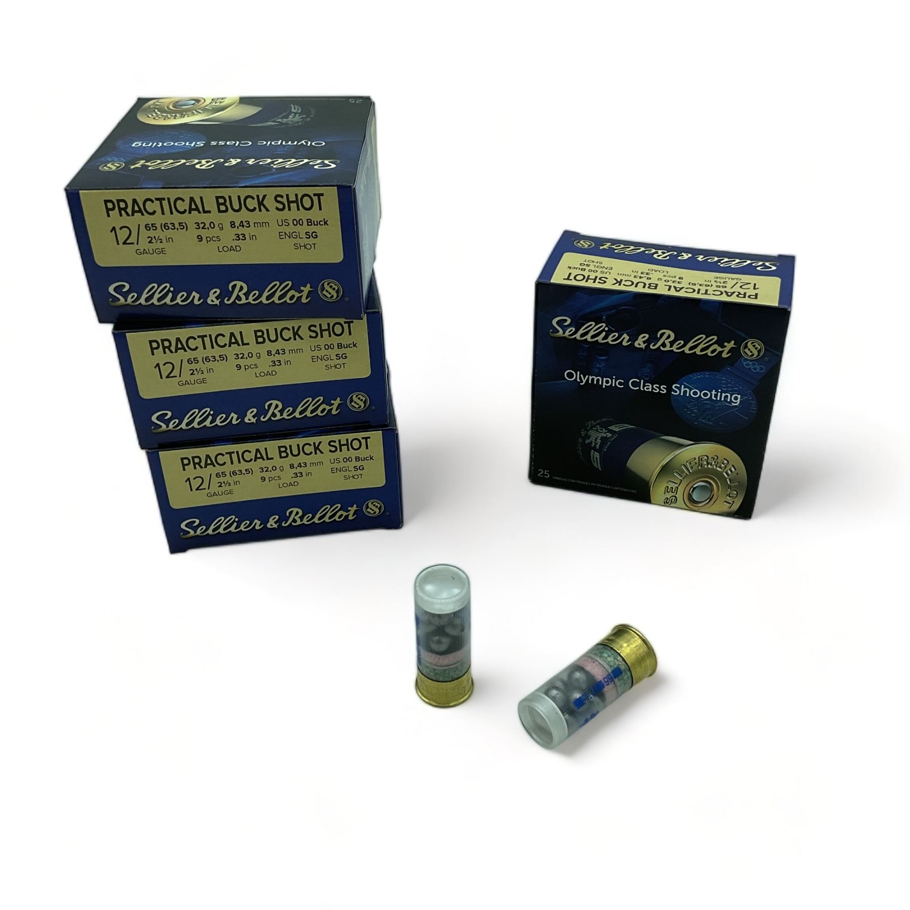 Sellier & Bellot Practical 12 Ga 2 1/2" 00 Buck Ammunition, 100 Rounds