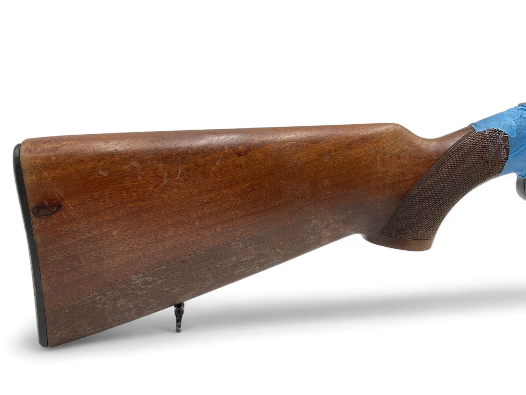 Classic Made By Fias Combination Gun 12Ga And 7X57R 24" Barrels Wood Stock. 12Ga barrel has 2.75" chamber. Fixed front sight, flip up rear sight. Wood forend is cracked and broken. Plastic butt plate is cracked and missing a section; rear stock is broken and cracked. Double triggers do not release when pulled, appears to be binding internally. This is a non-restricted firearm.