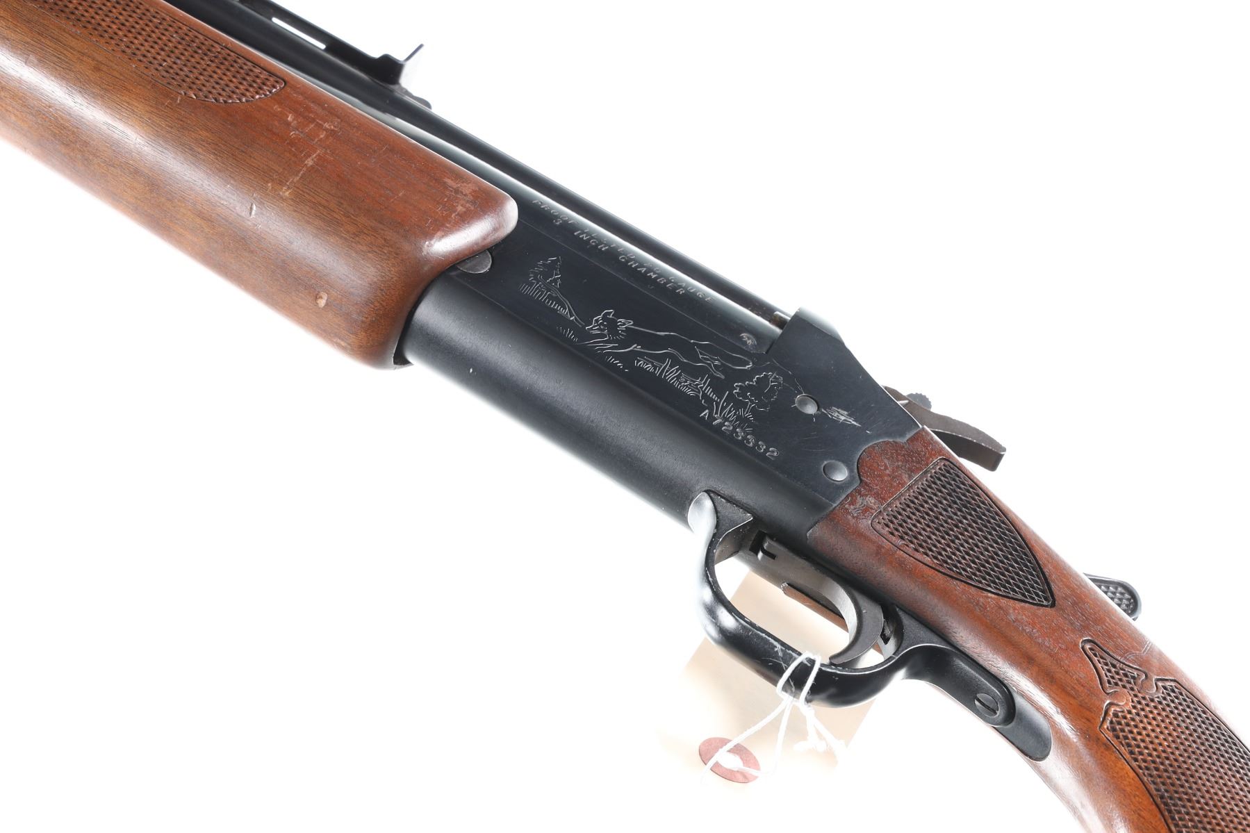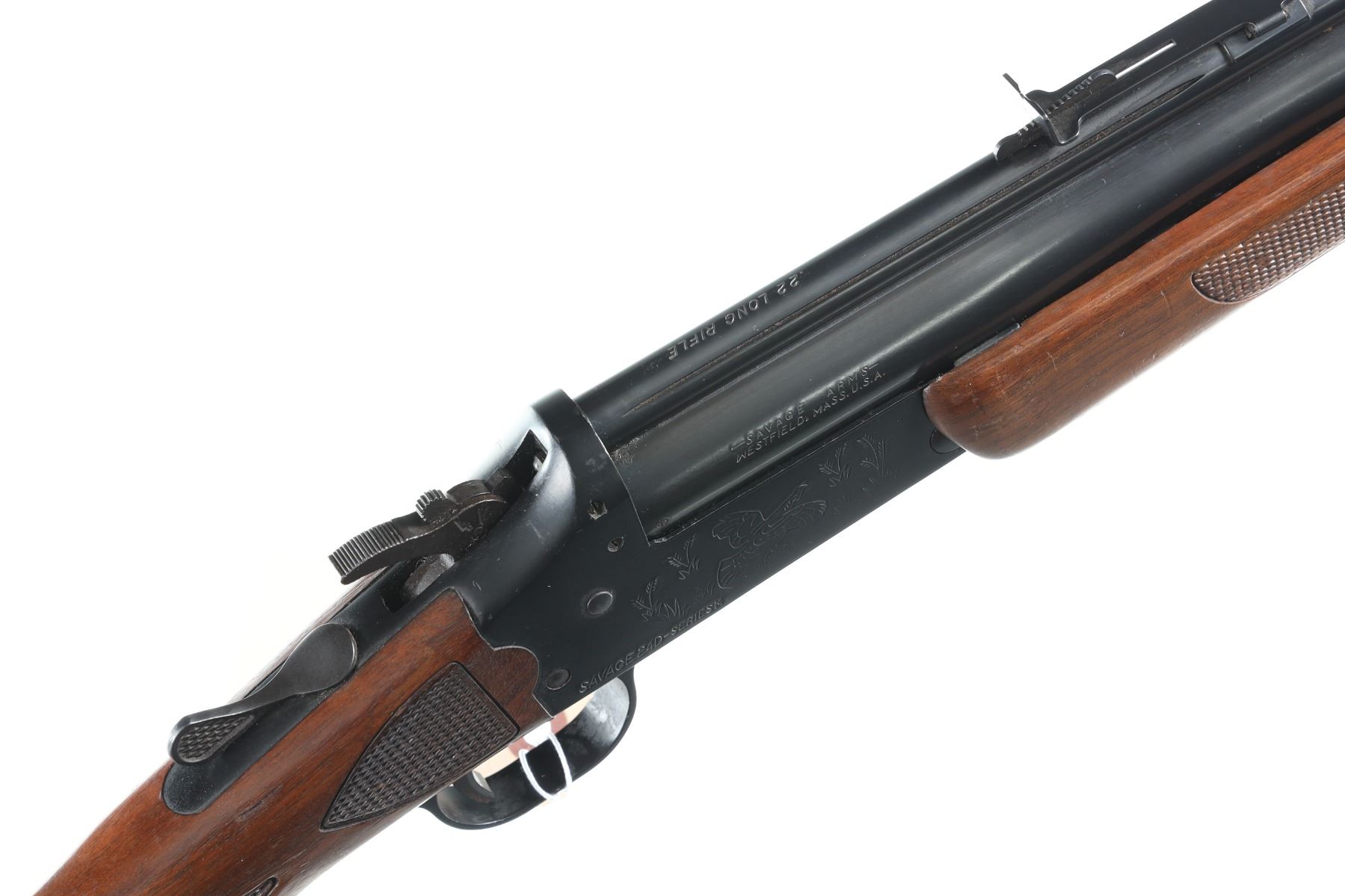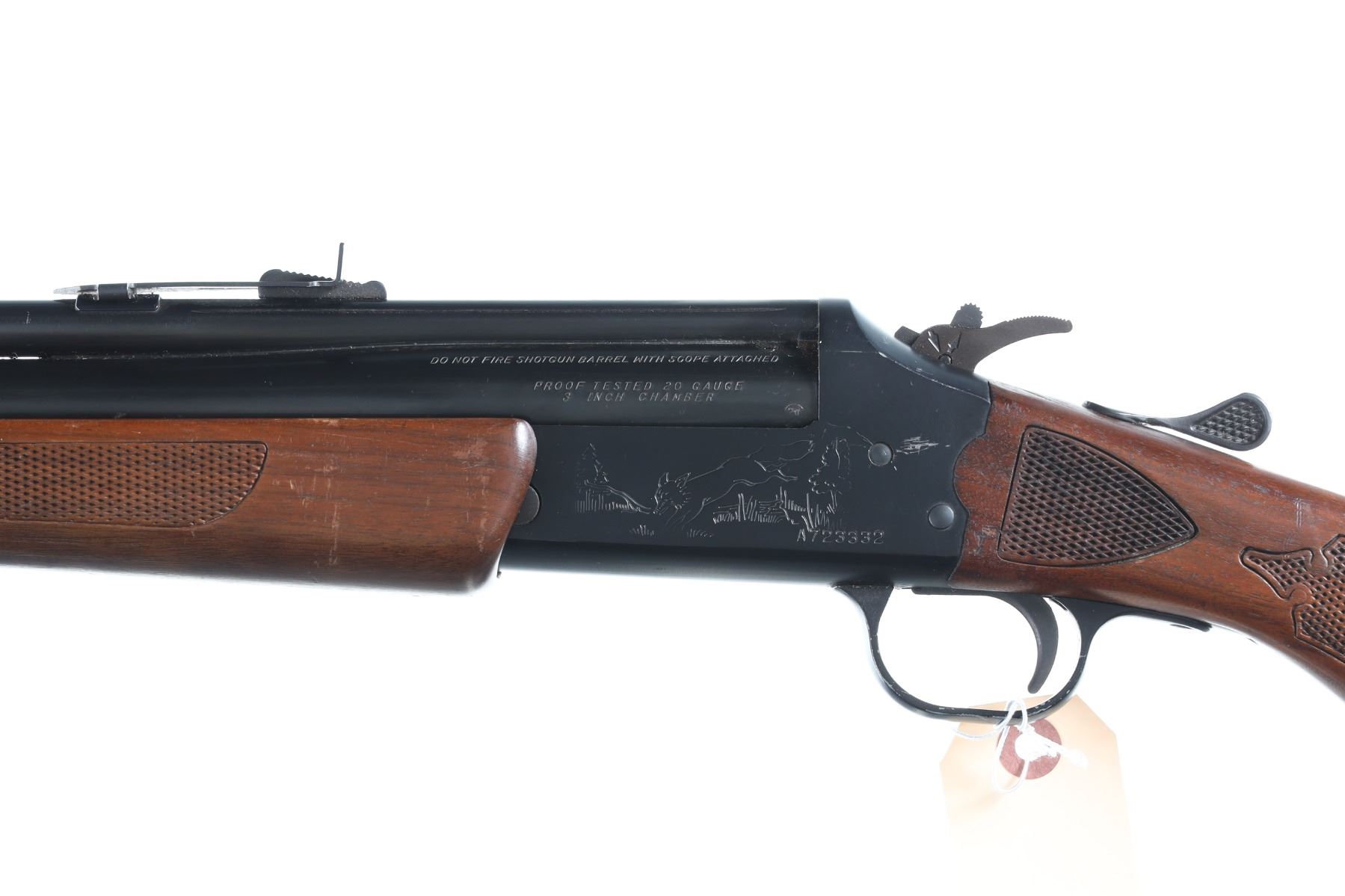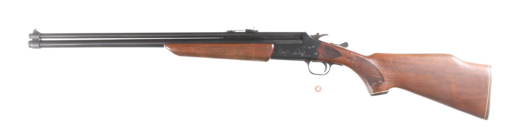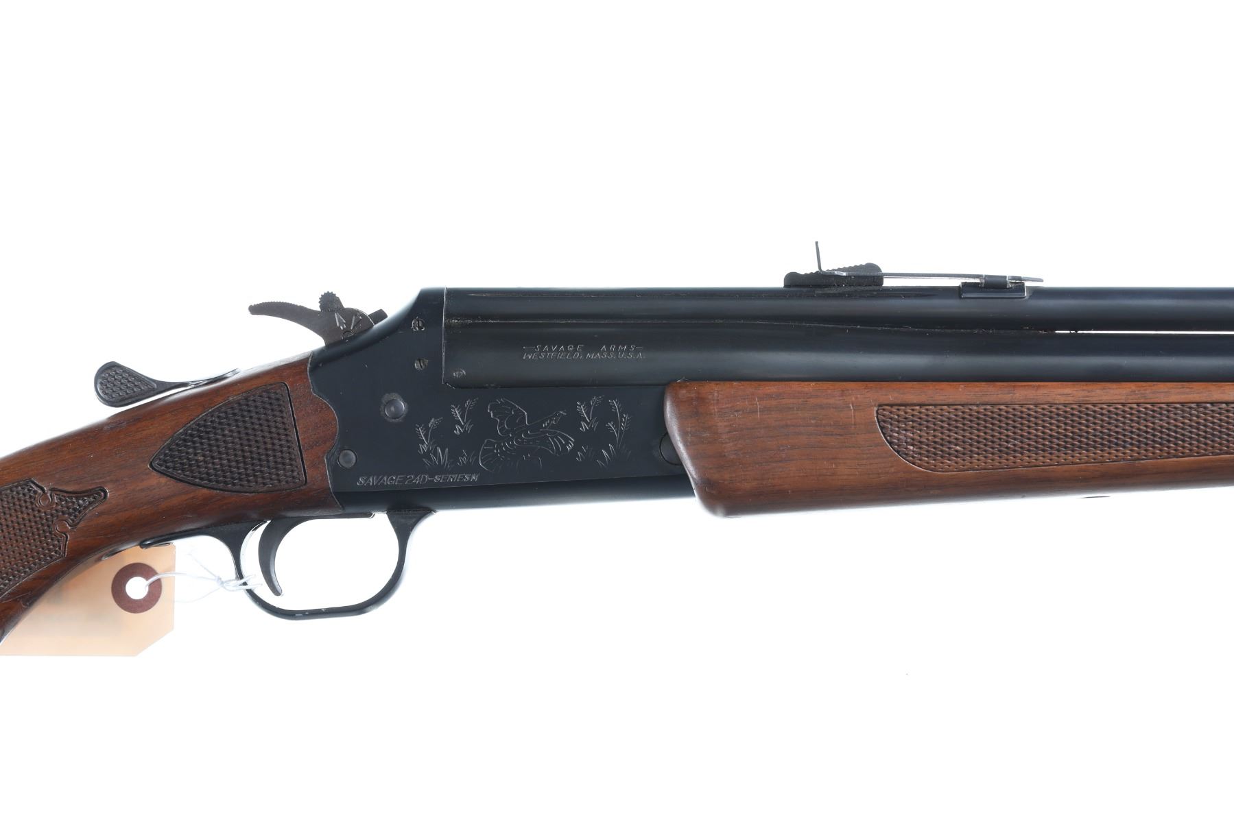 .22lr/20ga Serial # A723332 Savage over under combination rifle shotgun with deluxe wood Model 24D. Single trigger with Bbl, selector on exposed hammer. Open sight with grooved for scope use. Fine overall condition with light scratches on receiver and minor blemishes on stocks. Checkered walnut stocks. LOP 14 1/4". Barrel 24" Modern