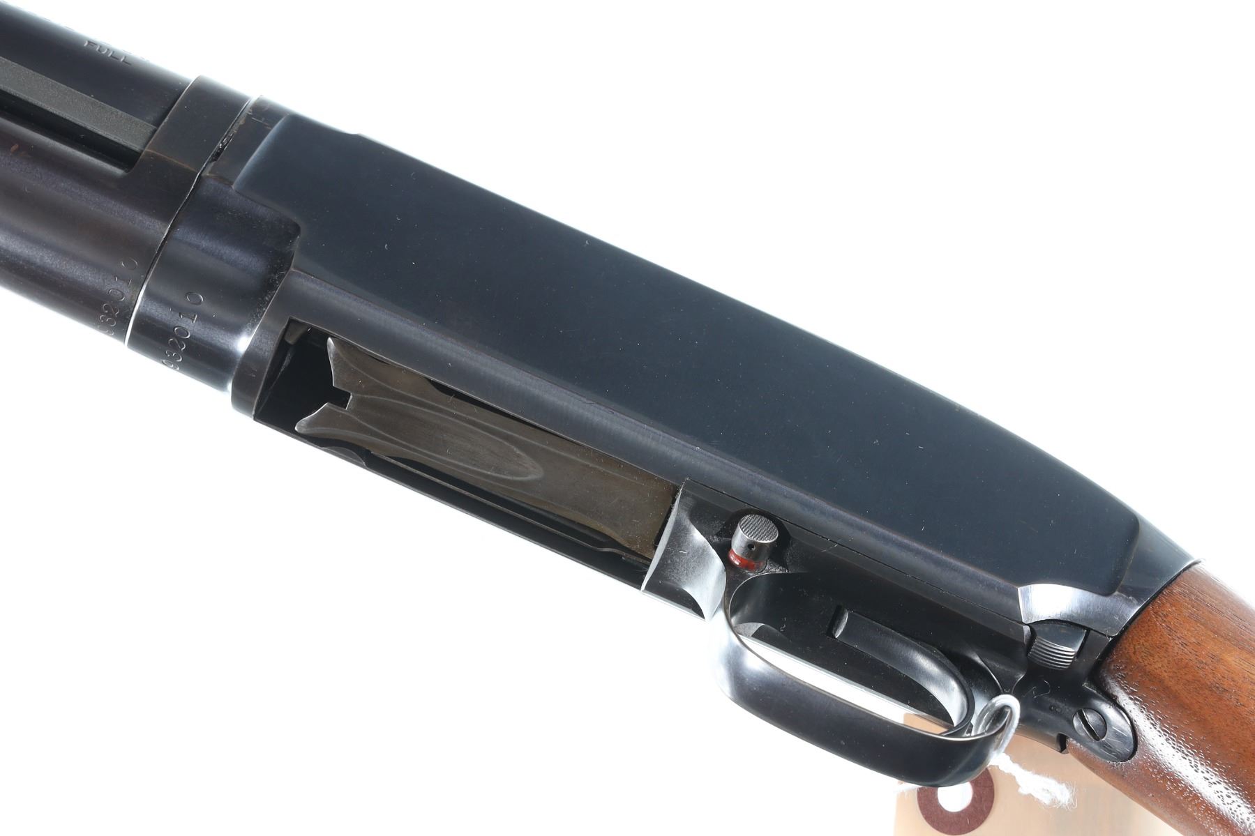 12ga Serial # 932010 Winchester WW2 Era Model 12 pump 12 ga, shotgun with walnut stocks. Metal surfaces rate excellent sporting original finish, stock lightly sanded and revarnished, forend has original finish. Mechanically excellent. Manufactured in 1941. Choke marked full, chamber marked 2 3/4", and 13 7/8" LOP. C&R Barrel 30" C&R