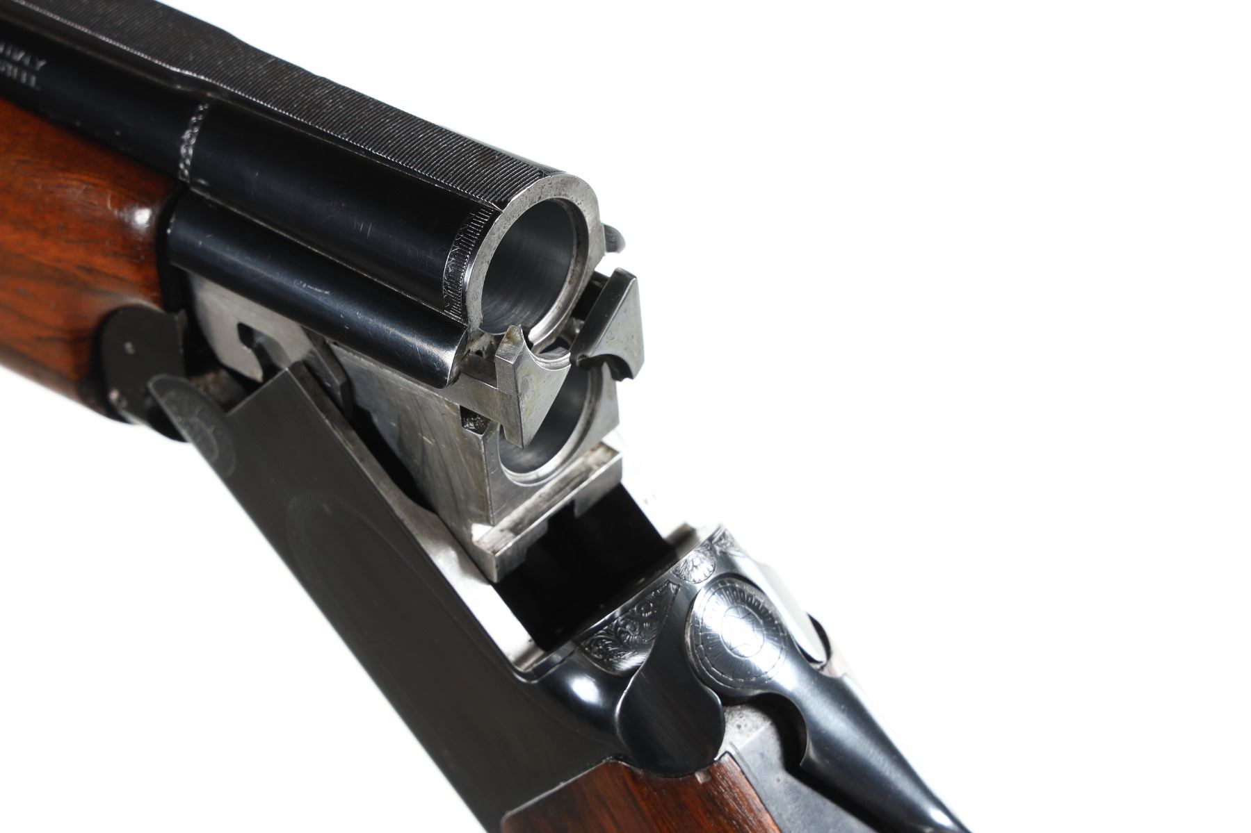 12ga Serial # 5191177 Choked Full/Mod, single trigger with ejectors, LOP 14 1/2", DAC 1 3/8", DAH 1 7/8". Very good overall condition with addition of custom pistol grip trap stock that is void of checkering. Manual safety has been deactivated with insertion of stop screw. Top lever is left of center, bores are bright, mechanically fine. Mfg in 1978 Barrel 30" Modern