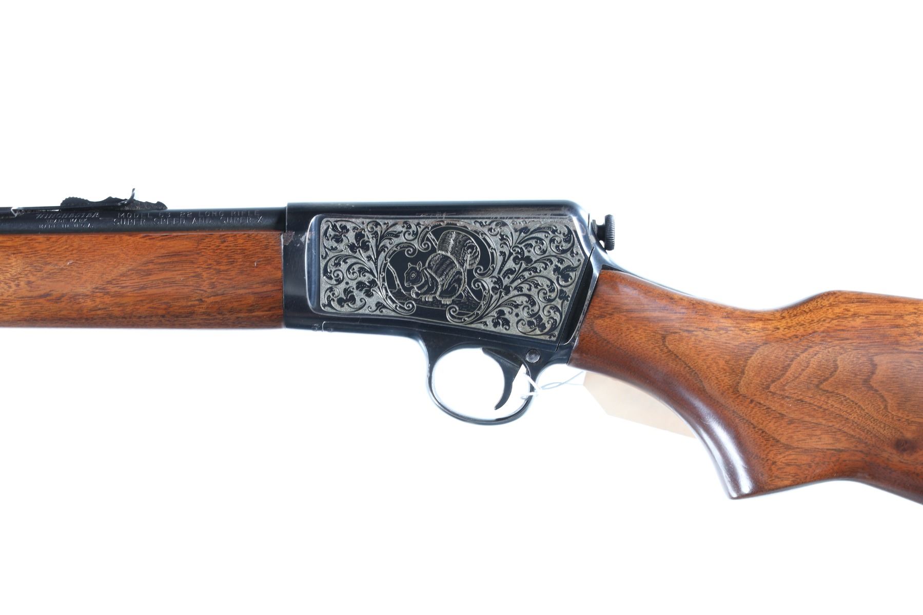 .22 lr Serial # 142244A Custom embellished Winchester Model 63 .22 LR rifle with select varnished walnut stocks. Extensive hand engraved receiver. Very good plus overall condition, custom engraved receiver. Manufactured in 1956. Mechanically excellent. C&R Barrel 23" C&R