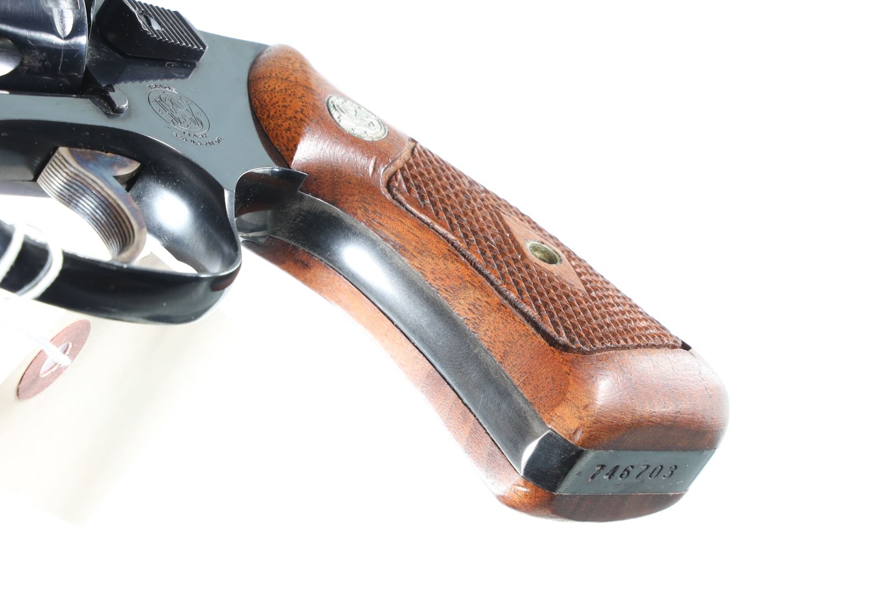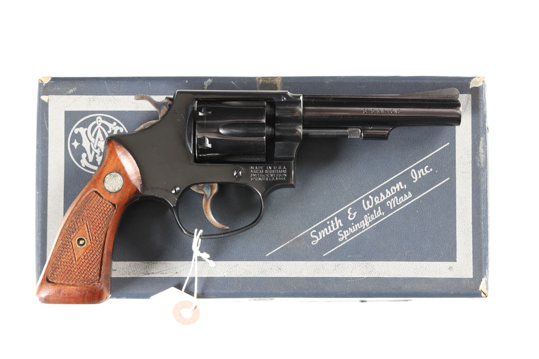 .32 S&W Serial # 746703 Flat latch, original diamond stocks serialized to gun. Excellent overall condition with factory box numbered to gun. Mfg 1962. Barrel 4" C&R