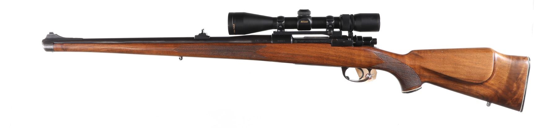 .270 win Serial # B84704 Mauser action with full length Mannlicher walnut stock, with Nikon 3x9 variable Pro-Staff scope. Very fine overall condition with some finish loss on edges. Barrel 20" Modern