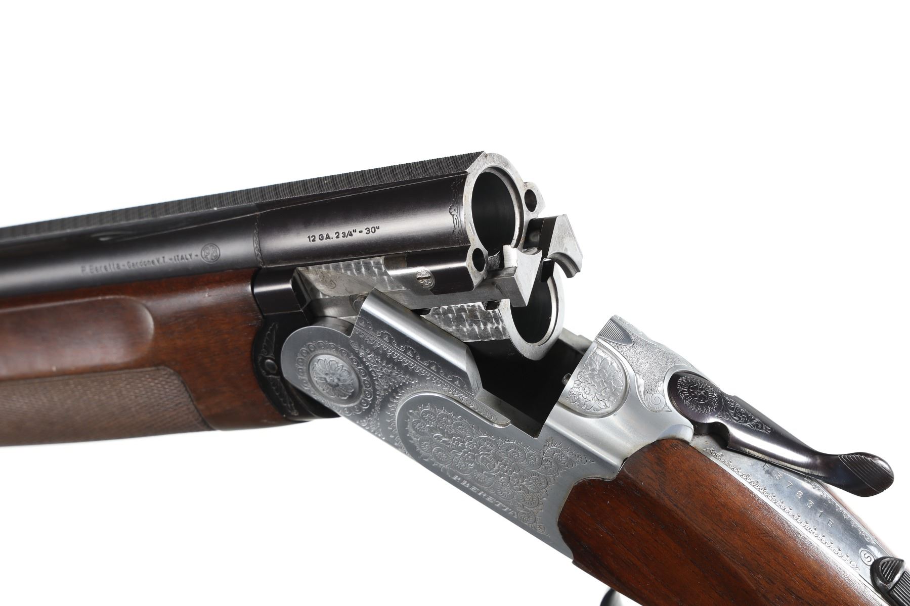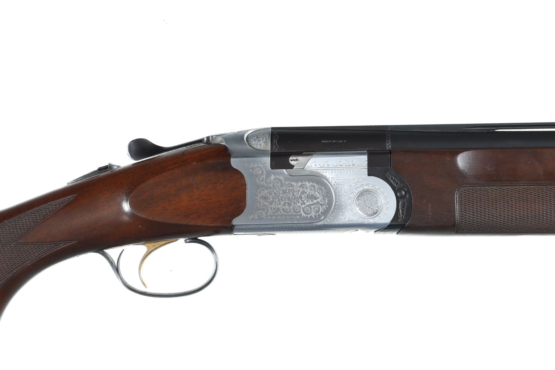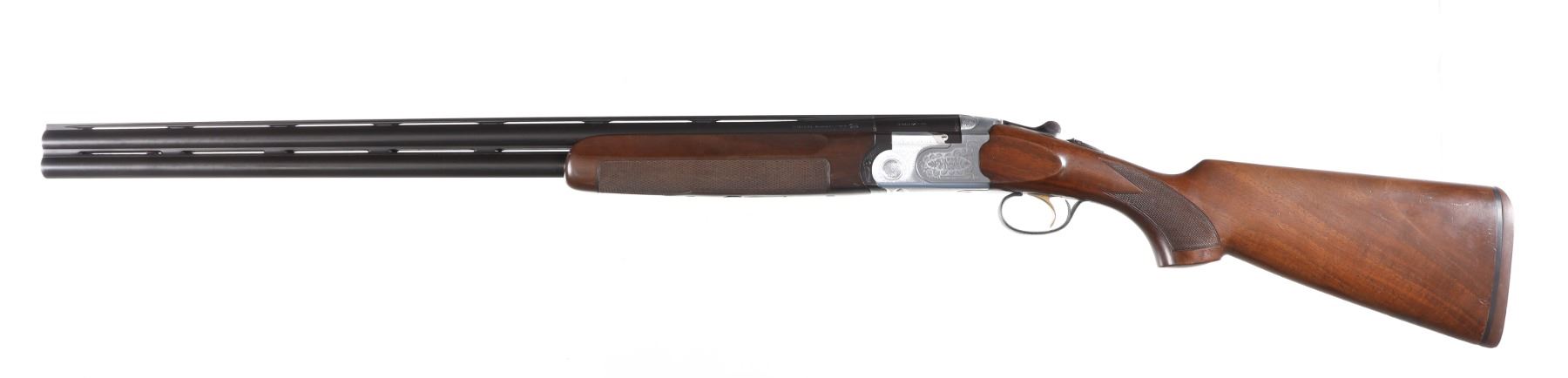 12ga Serial # F37831B Choked Imp Cyl/Mod with 3" chambers, single selective trigger with ejectors, engraved receiver, blue finished barrels with wide sporting rib. Checkered pistol grip stocks. LOP 14 1/2", Drop 1 5/8"; 2 1/2". Excellent overall condition, bright and shiny bores. Mechanically excellent. Mfg in 1989 Barrel 30" Modern