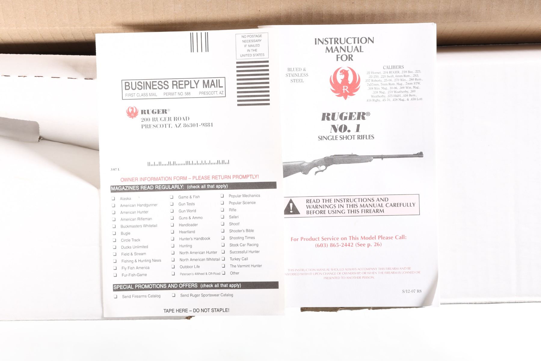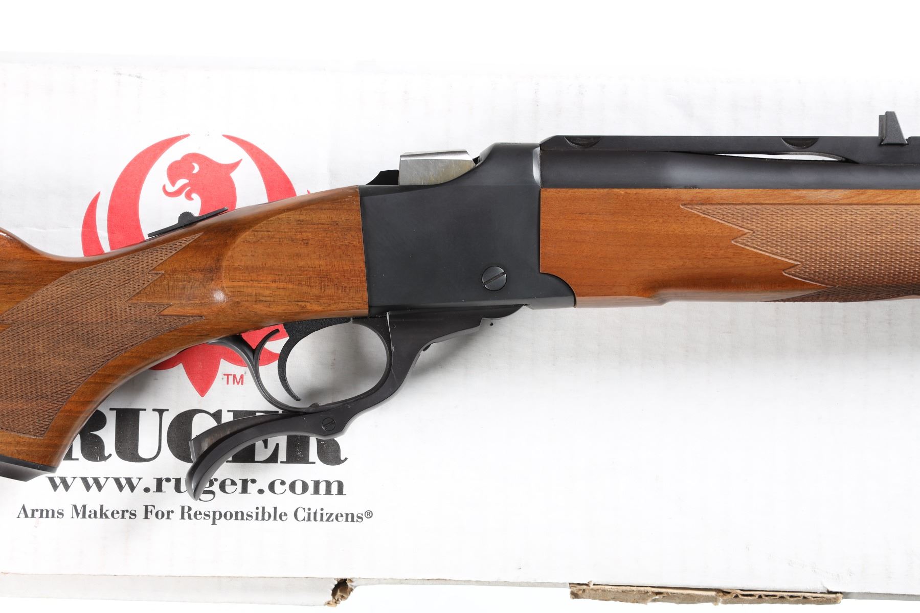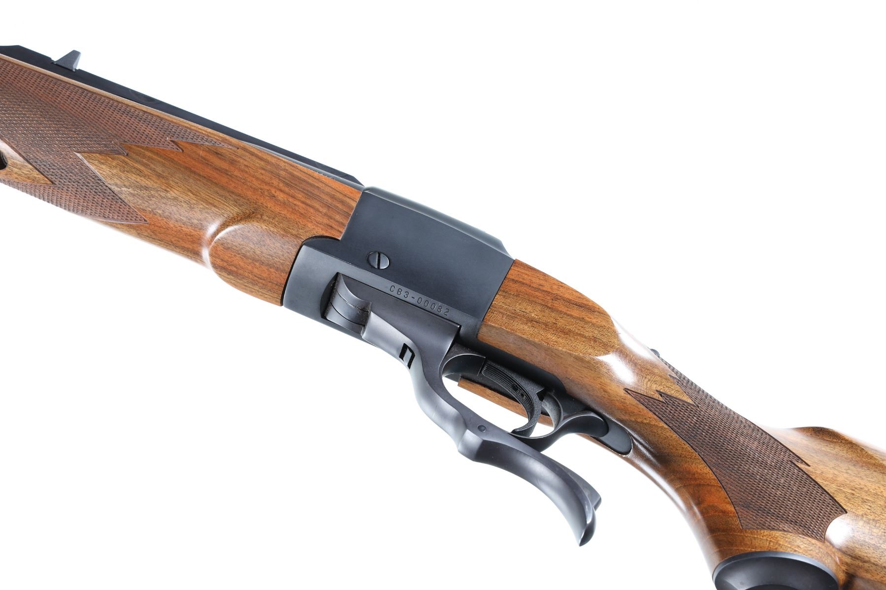 .300 H&H Mag Serial # CB3-00082 Introduced by Ruger as the famed Craig Boddington series. 4 separate calibers all chosen by Boddington with 150 of each caliber made. This is the 3rd in the series and these are the only .300 Holland & Holland Magnums ever produced in a Ruger number 1 by the factory. Stocked with Circasian Walnut with a special selected checkering pattern, Matte blue finish and mounted with quarter rib and open sights. Rifle comes with matching box, papers and lock. Very fine with bright sharp bore and metal retains over 99% finish. Stocks have a number of storage bruises and impressions. Action operates properly. A very uncommon Ruger Number 1. Mfg 2008. Barrel 26" Modern