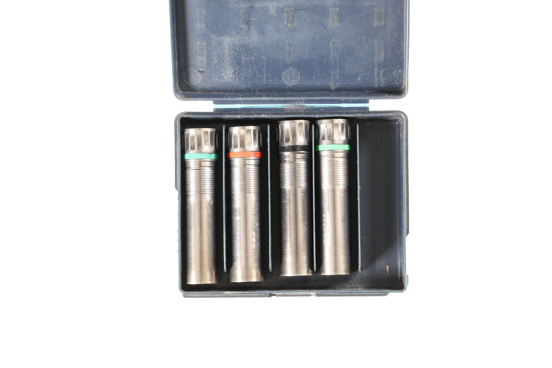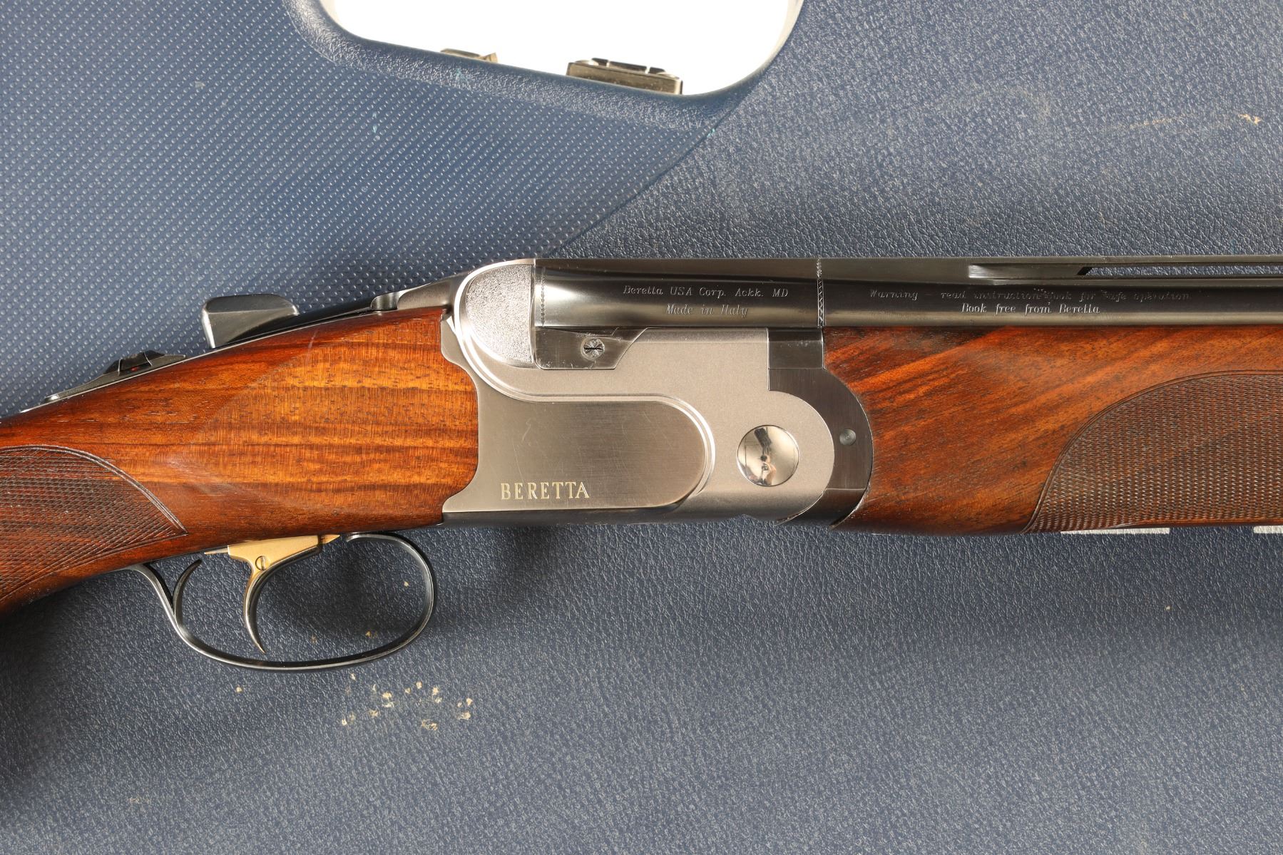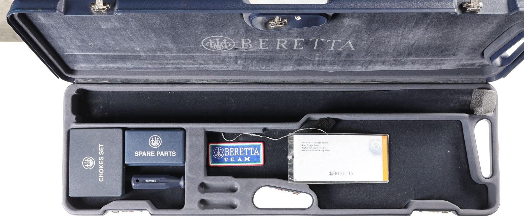 12ga Serial # AF6675B Serial Number AF6675B Barrels 30" caliber 12 Ga, Mfg, 2003. Beretta Model DT 10T Trident . Blue finished barrel with wide sporting Vent rib with dual sight beads. 3" 12 Ga, Chambers with 5 factory extended choke tubes. Single selective / adjustable trigger with ejectors. 14 1/4" LOP 1 3/8" drop at Comb 2" drop at heel. Comes with tools, snap caps, instruction manual and factory hard case. Extremely fine with barrel retaining over 98% blue finish with losses only under the wood line and a couple spots of oxidation at top of chambers. Stocks are excellent with some light impressions. Action operates properly. Modern