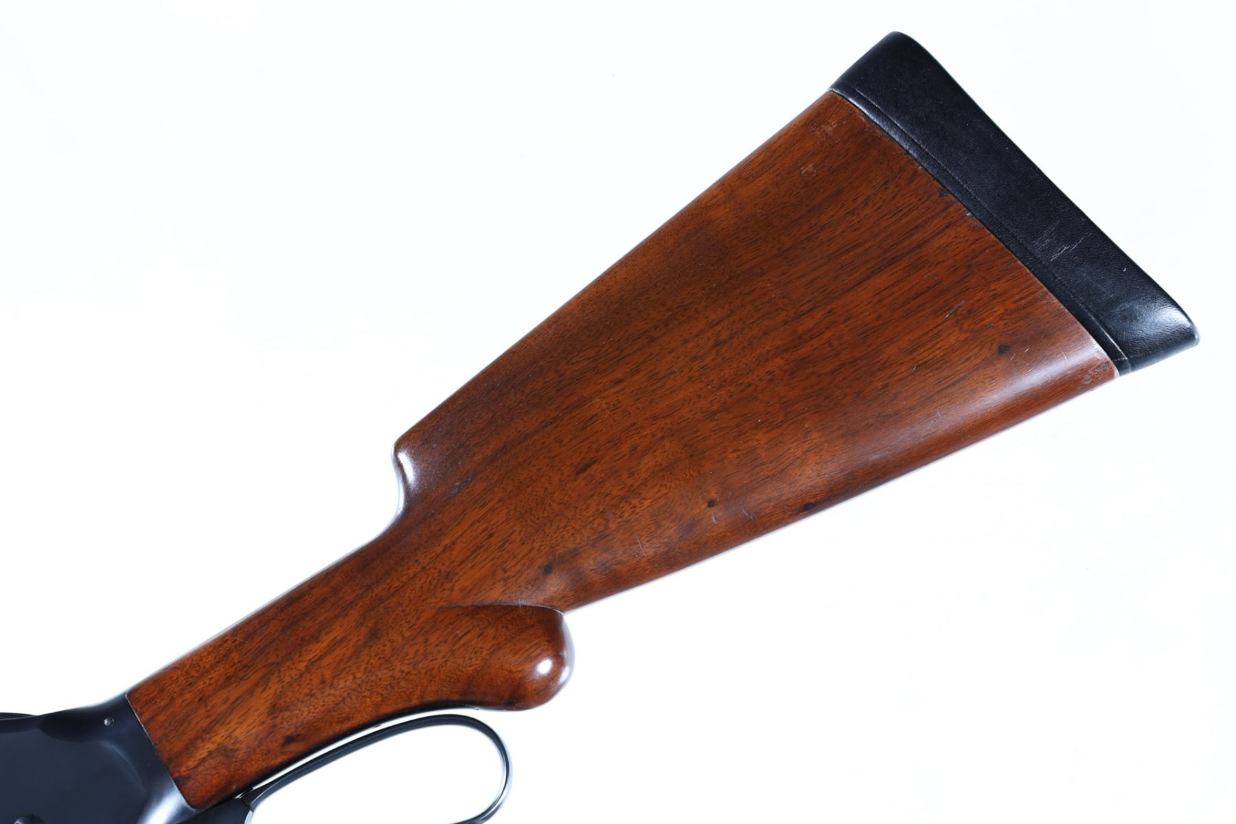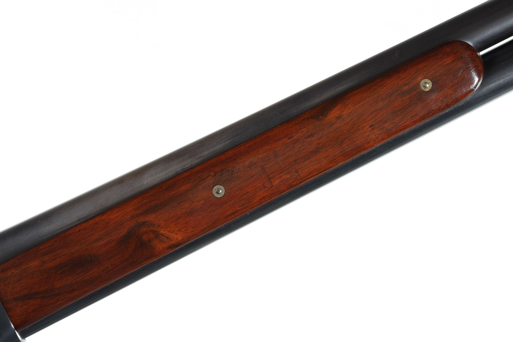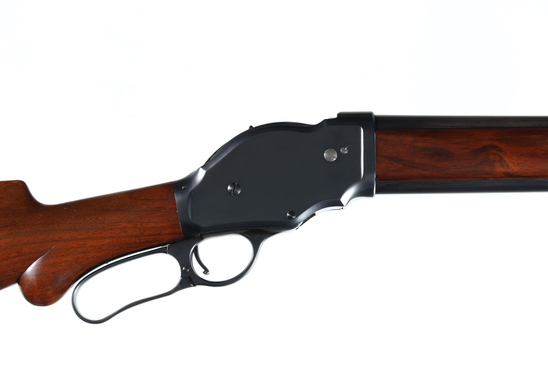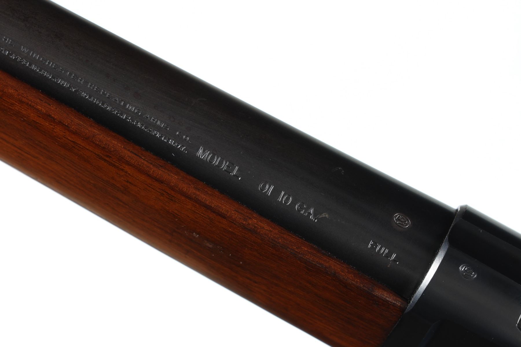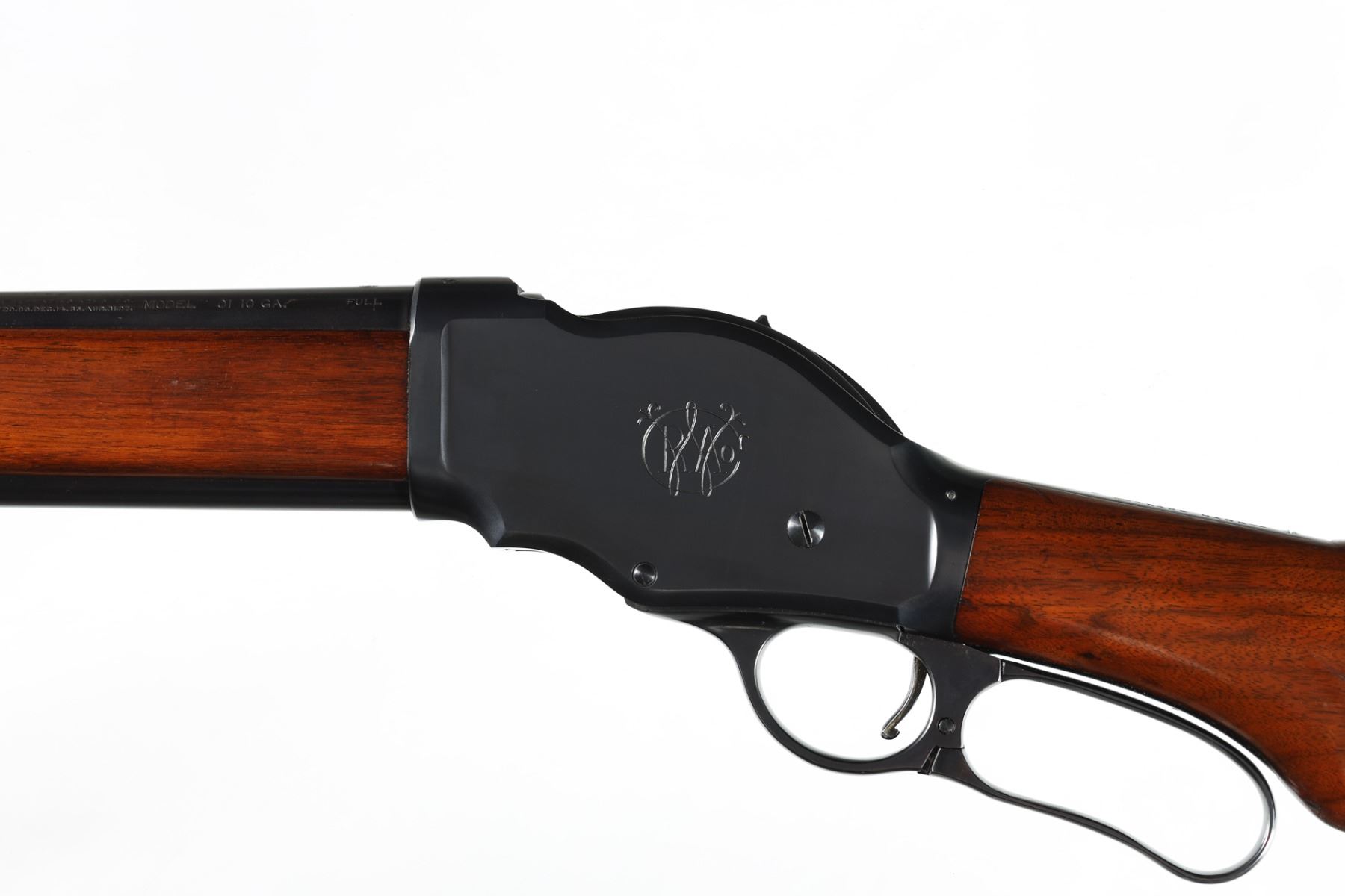 10ga Serial # 78098 Outstanding Winchester Model 1901 Lever Action shotgun. Barrel 32" Caliber 10 Ga, Mfg 1916. blue finished with varnished straight grained American walnut stocks with round pistol grip and leather covered recoil pad. Bead front sight with Winchester address on left side of barrel with Model 01 10 GA FULL. Small Winchester proof on top of chamber and top of receiver. Script WRA on left side of frame. Exceptionally fine with brilliant bright bore. Most all blue finish remains with a slight trace of edge wear. Action operates properly. Stocks are very fine. LOP 13" C&R Barrel 32" C&R