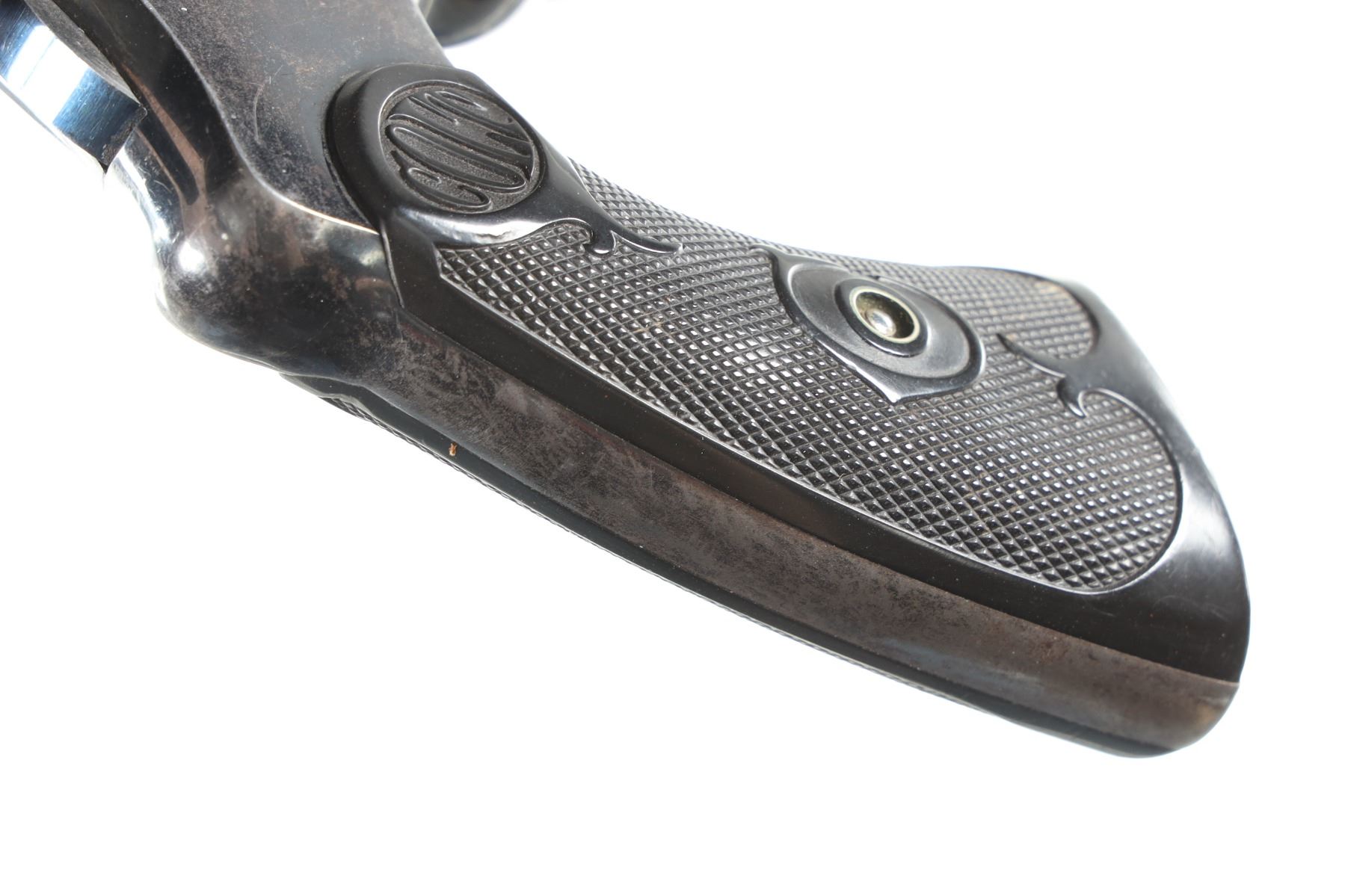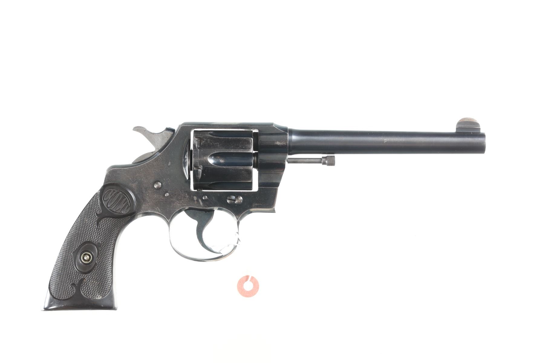 .38 spl Serial # 315799 Very fine overall condition with slight finish loss at edges, sight modified for target use, grips are very good remaining full size, mechanically excellent. Frame manufactured 1909, later production Official Police marked barrel. Barrel 6" C&R