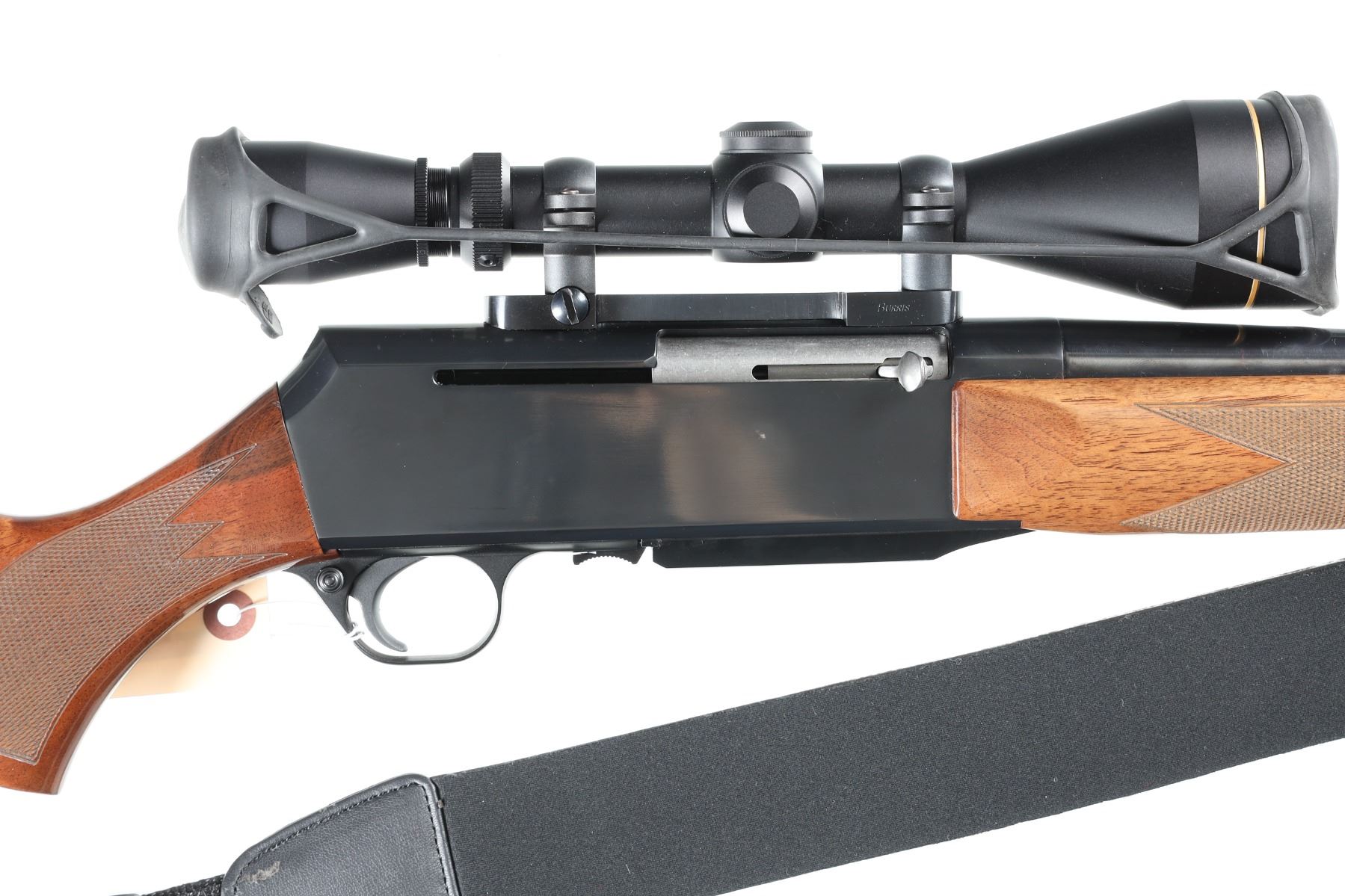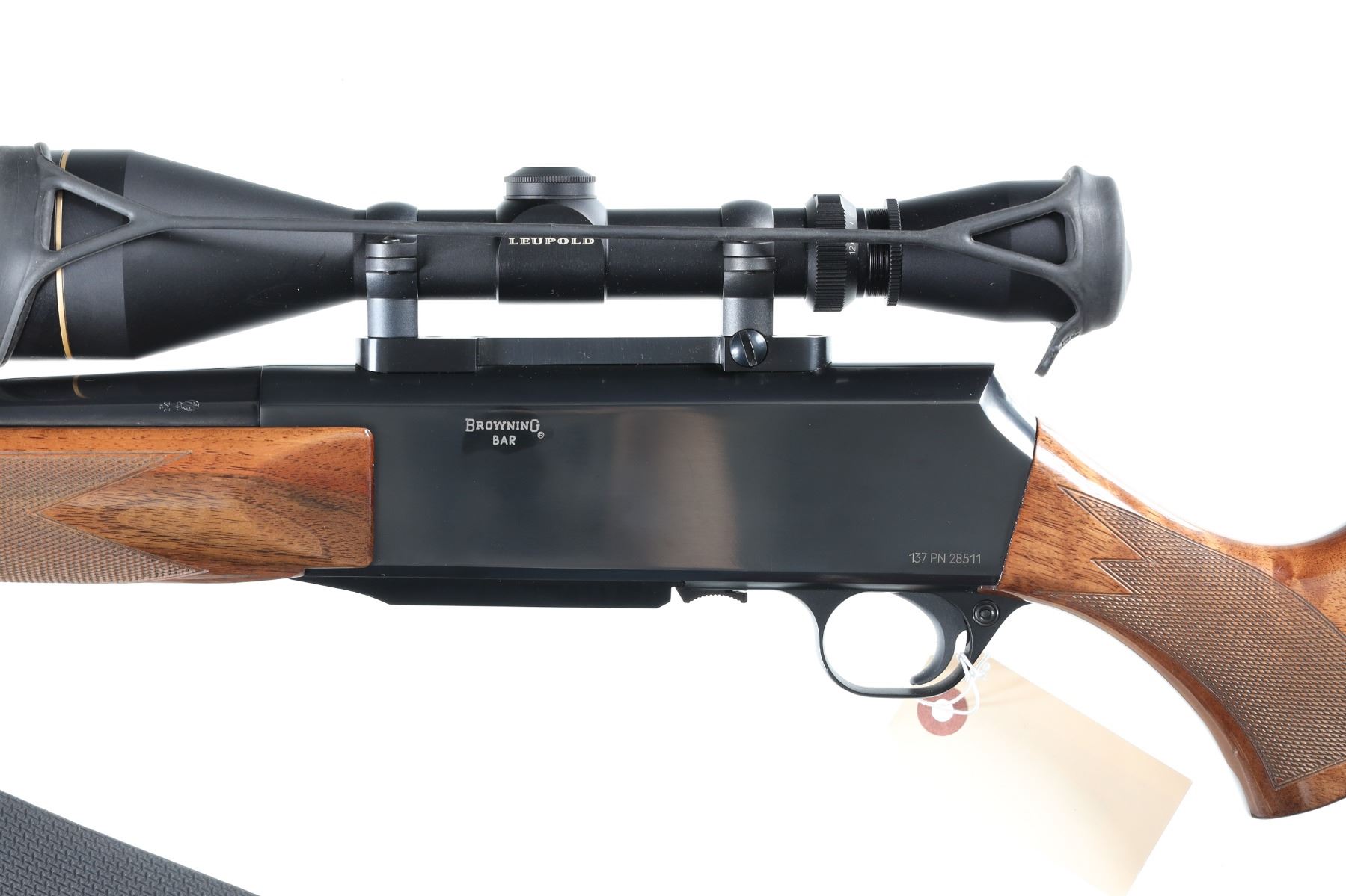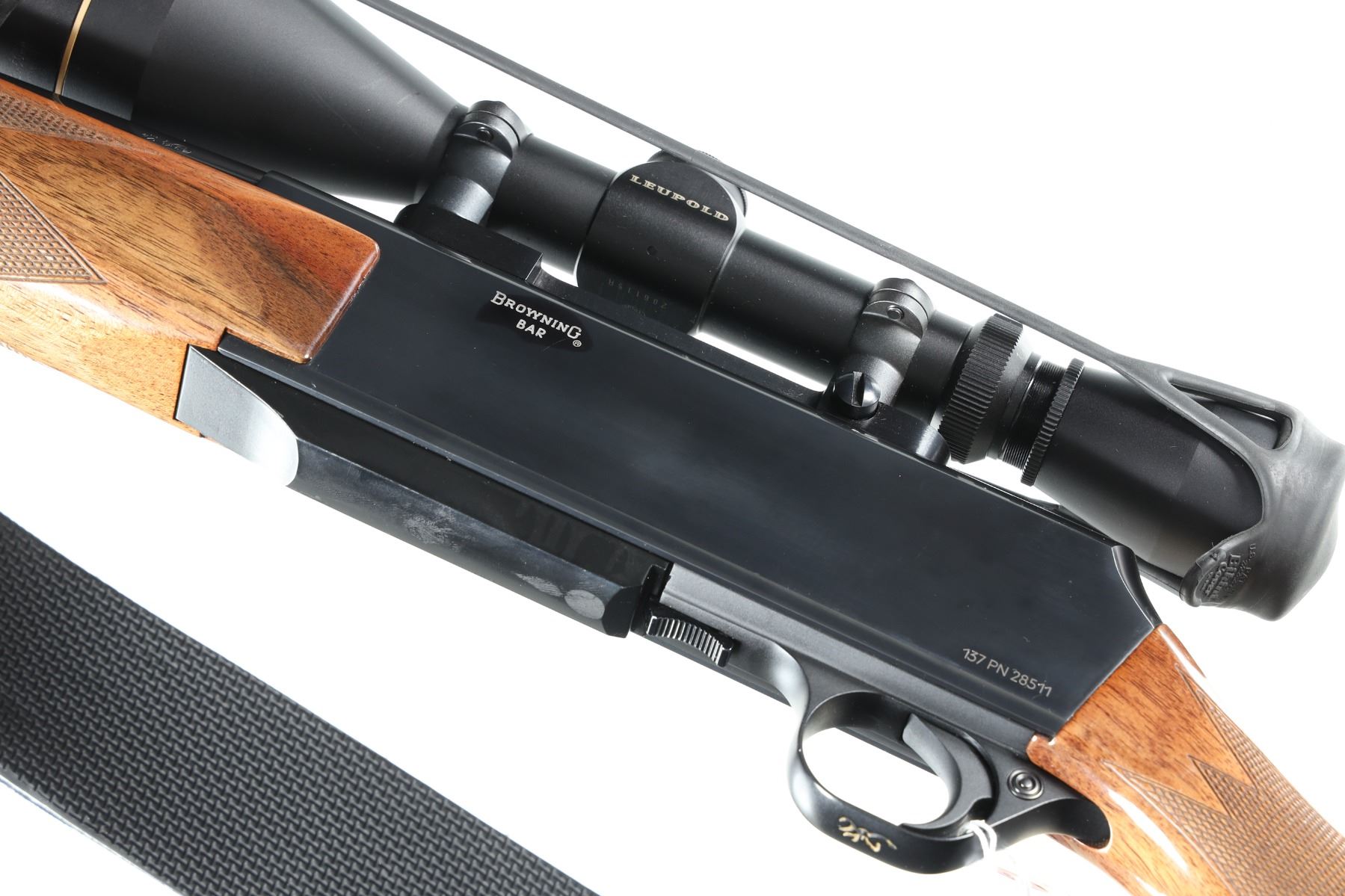 .280 rem Serial # 137PN28511 Browning BAR High Power center fire rifle chambered in the scarce .280 Remington cartridge. Mfg, 1989 with blue finished metal with varnished checkered pistol grip walnut stocks. Near excellent overall condition with light handling marks. Leupold VX-II 4-12x50 scoped. No provision for front or rear sight. Mechanically excellent. Barrel 22 1/2" Modern