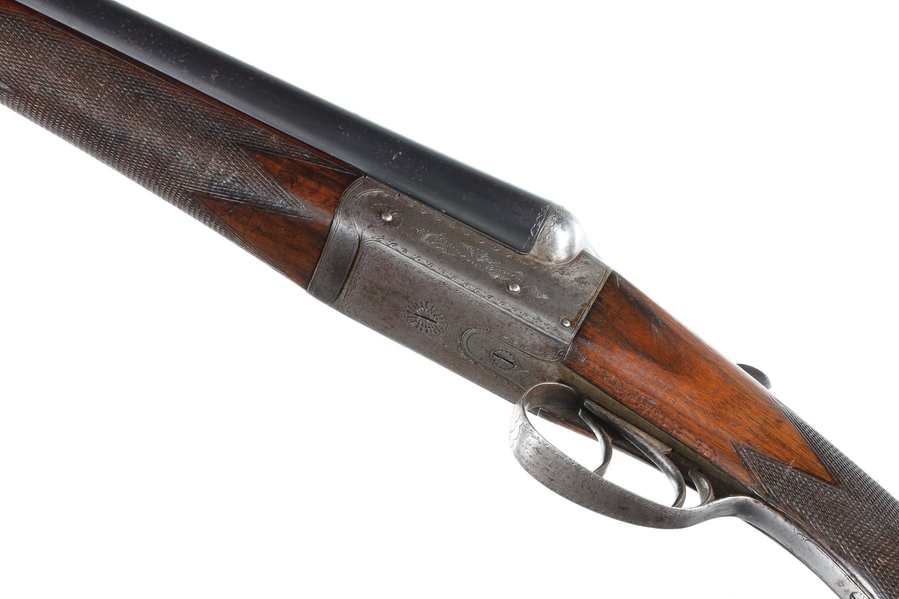 12ga Serial # 90854 Midland Gun Company of Birmingham. Box lock action with double trigger and lifter extractors. 30" Bbl, with 2-1/2" chambers and choked imp, mod & Skeet. Varnished checkered pistol grip walnut stock with splinter forearm and having 14 1/4" LOP and 1- 1/2" & 2" drop. Condition, Very fine overall as English refinished with most blue finish remaining, action has toned to grey. Mechanically excellent. Stock has some bruises and impressions. C&R Mfg in 1932 Barrel 30 C&R