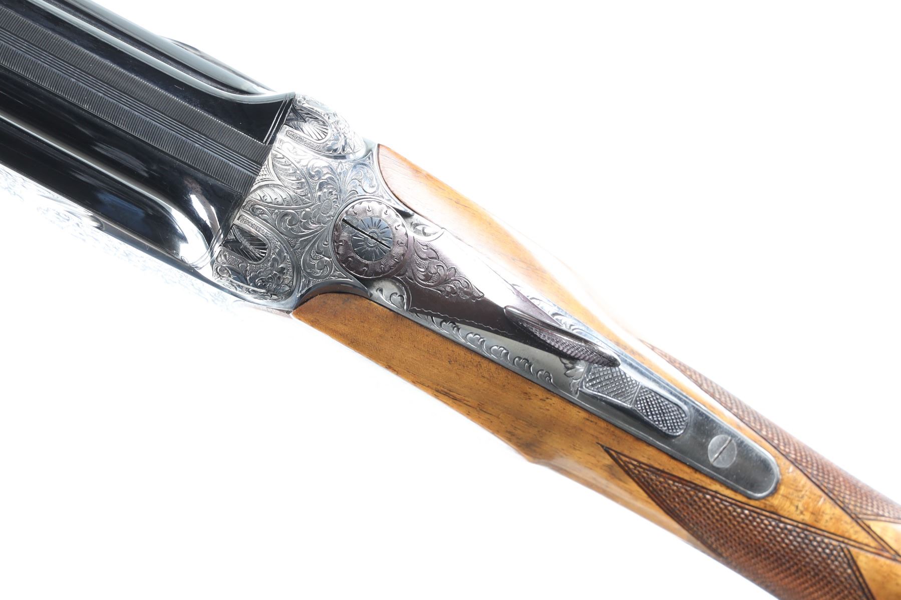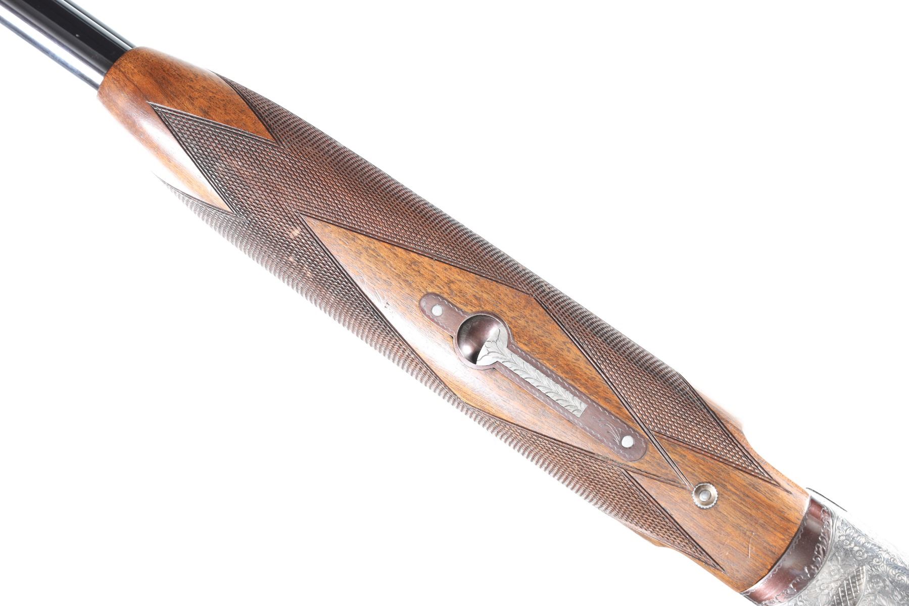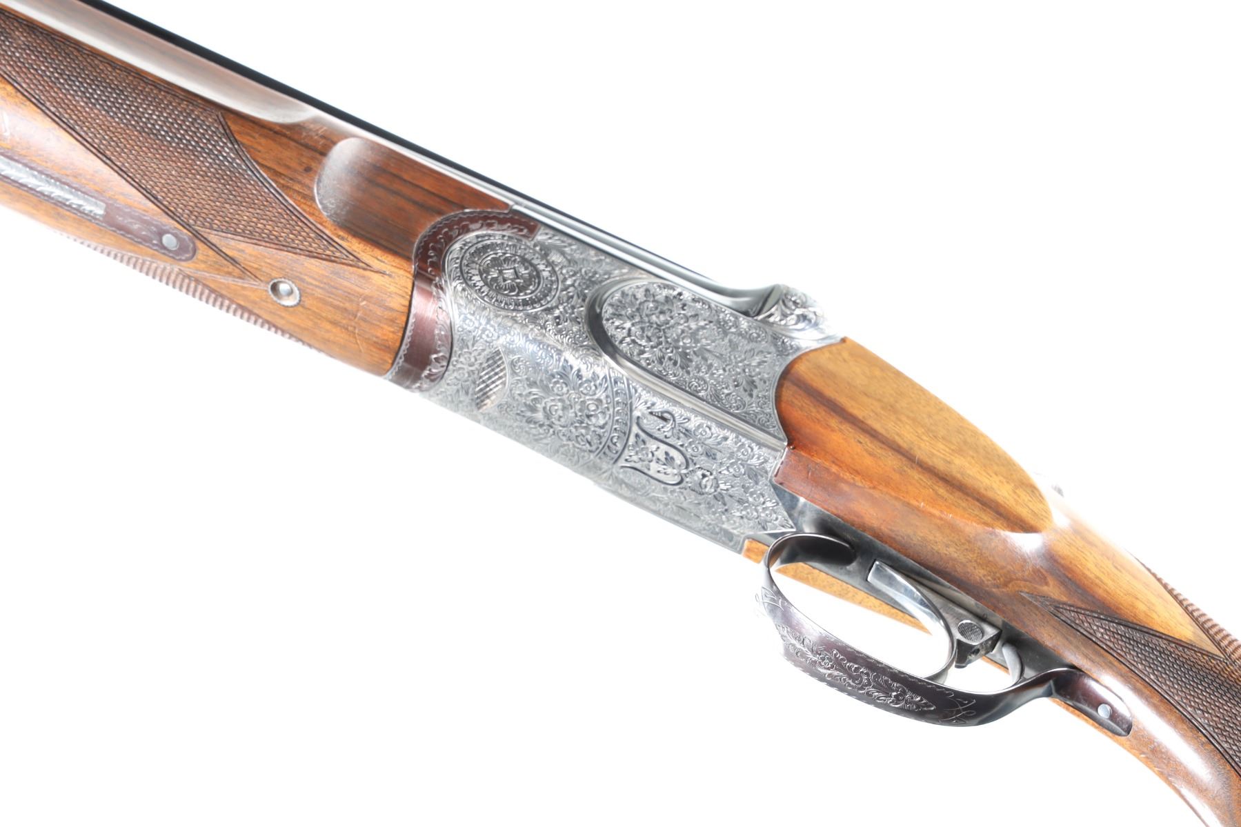 12ga Serial # 63677 Very fine overall condition with light handling. Choked Skeet/Imp Cyl with interchangeable tubes, single selective trigger with ejectors. LOP 15" over 1" leather covered recoil pad. Barrel 25 1/2" Modern