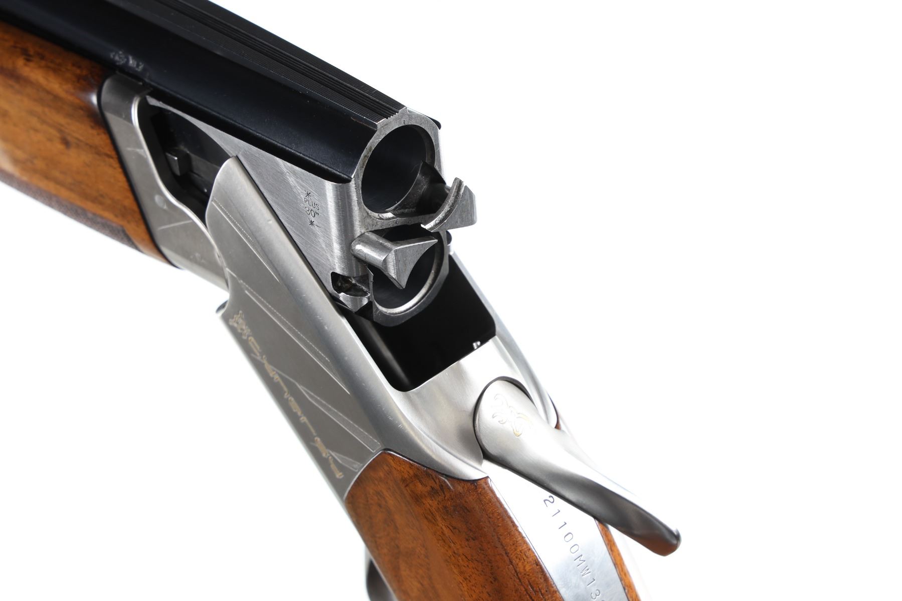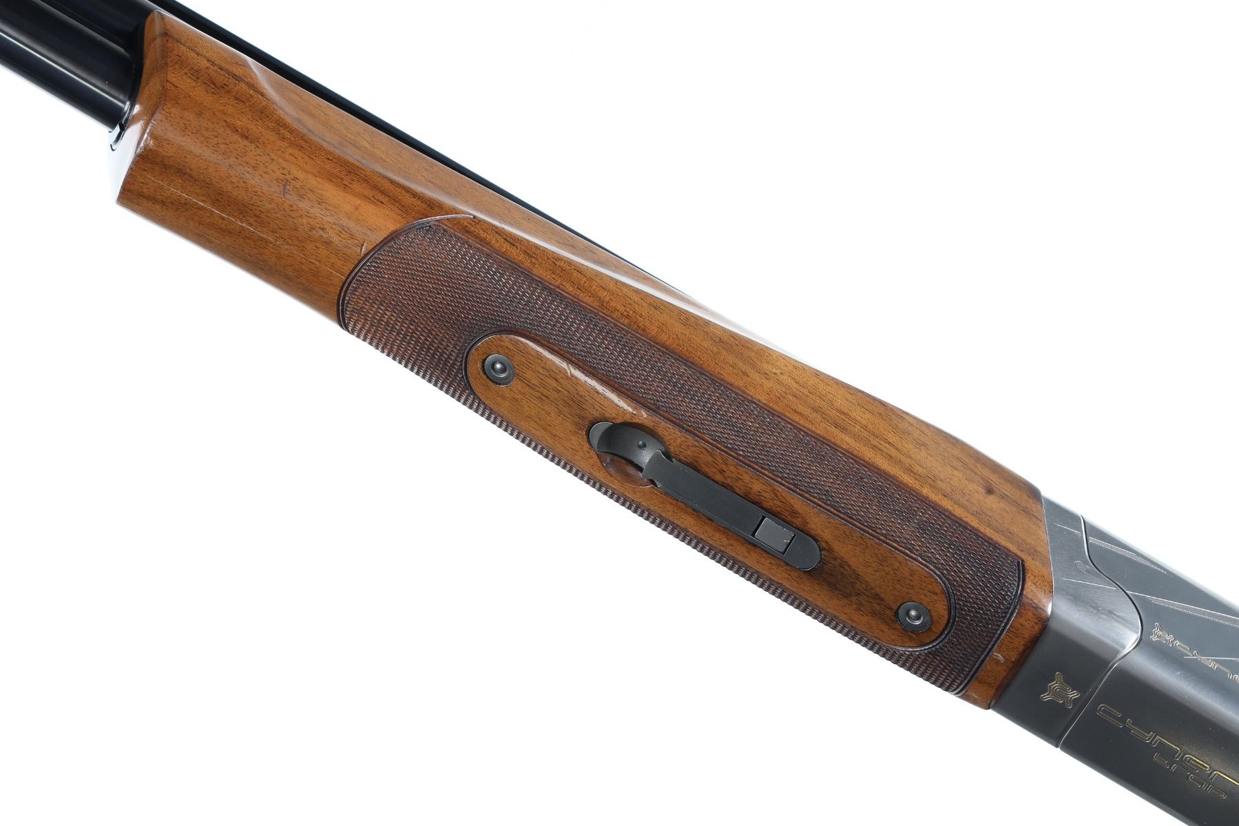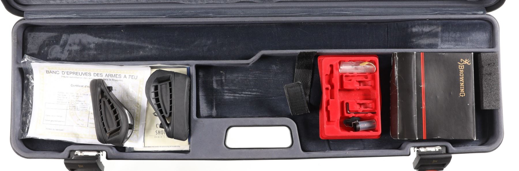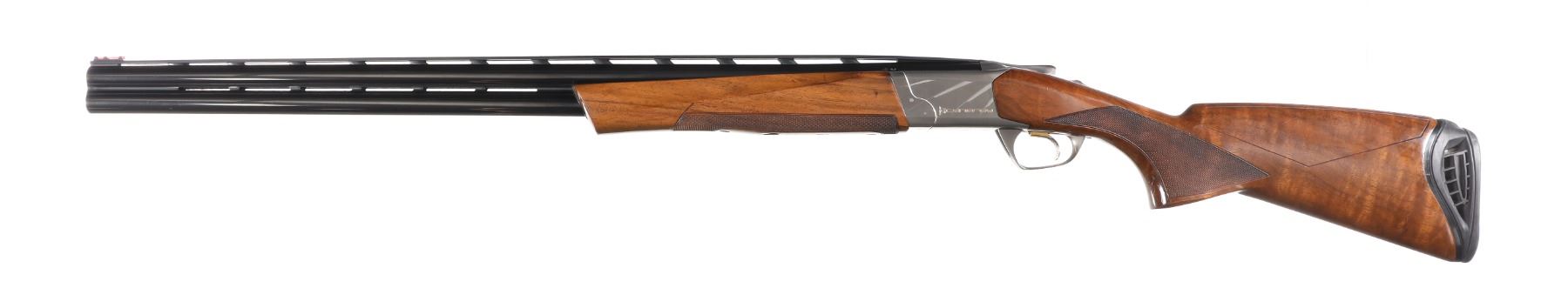 12ga Serial # 21100MW132 2 3/4" chambers, choked Full/Imp Mod. Raised Trap ventilated rib on blue barrels with stainless Browning Cynergy trap receiver, competition checkered pistol grip stock. LOP 14 3/4" with additional recoil pads of different lengths. DAC 1 1/2", DAH 2". Very fine overall condition with light impressions in stock, metal finish remains excellent. Case is good overall condition. Mfg in 2004 Barrel 30" Modern