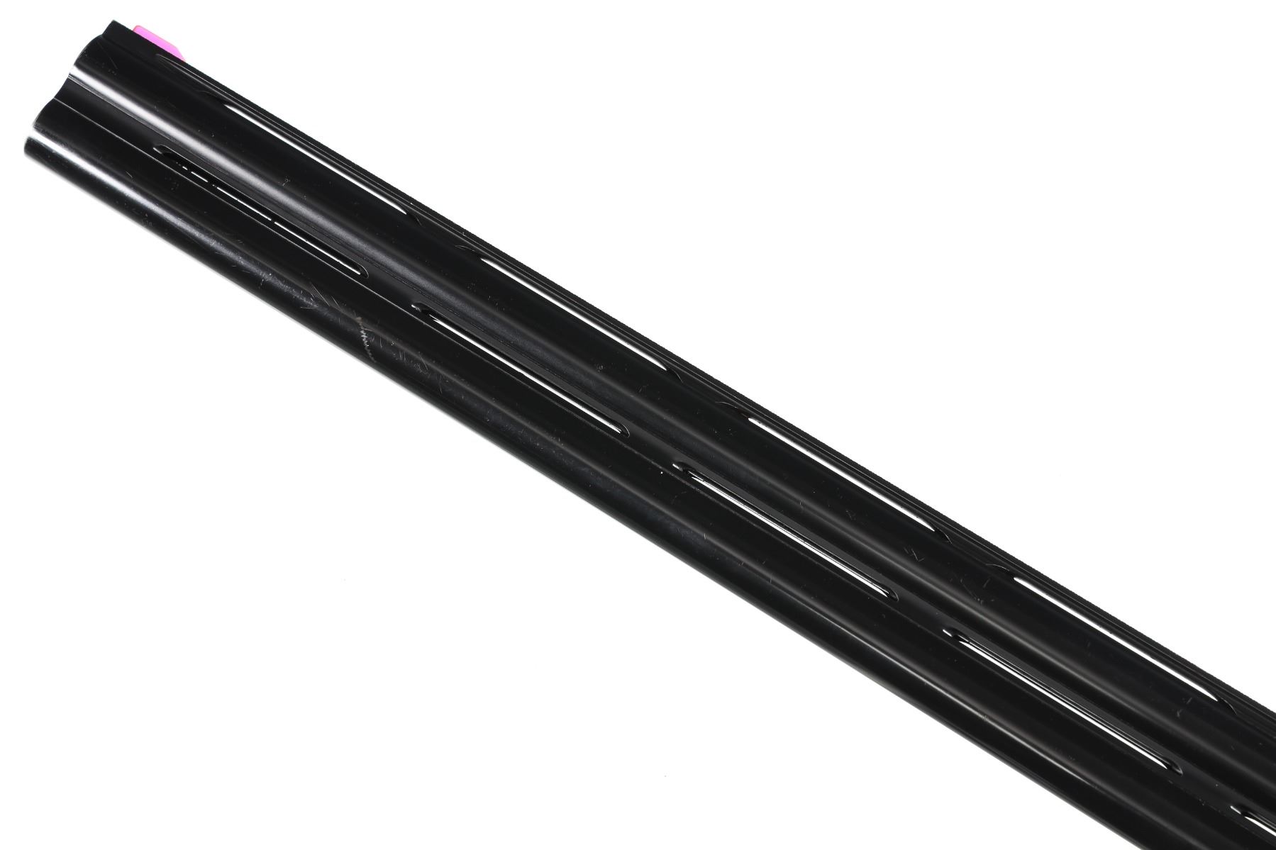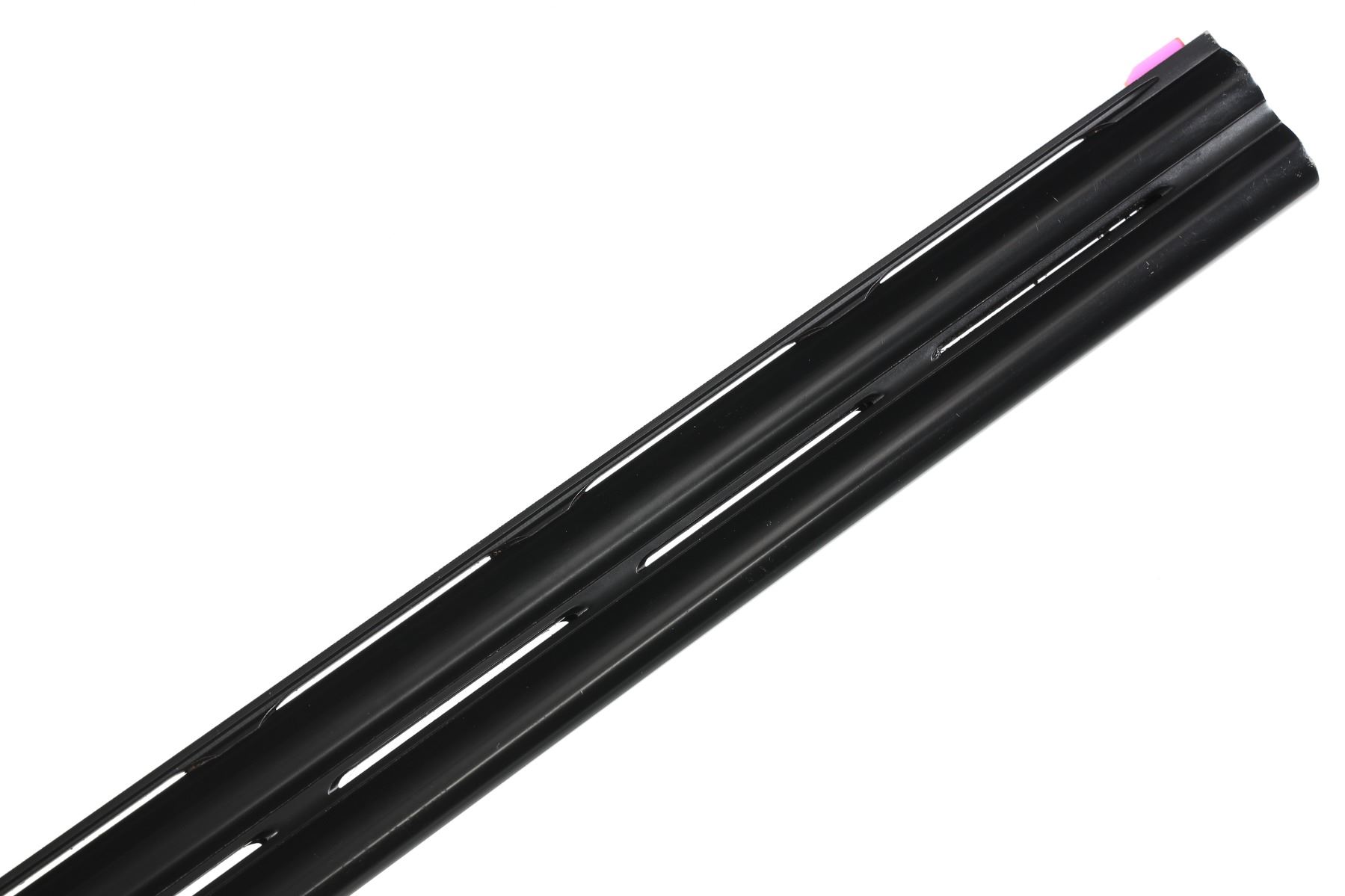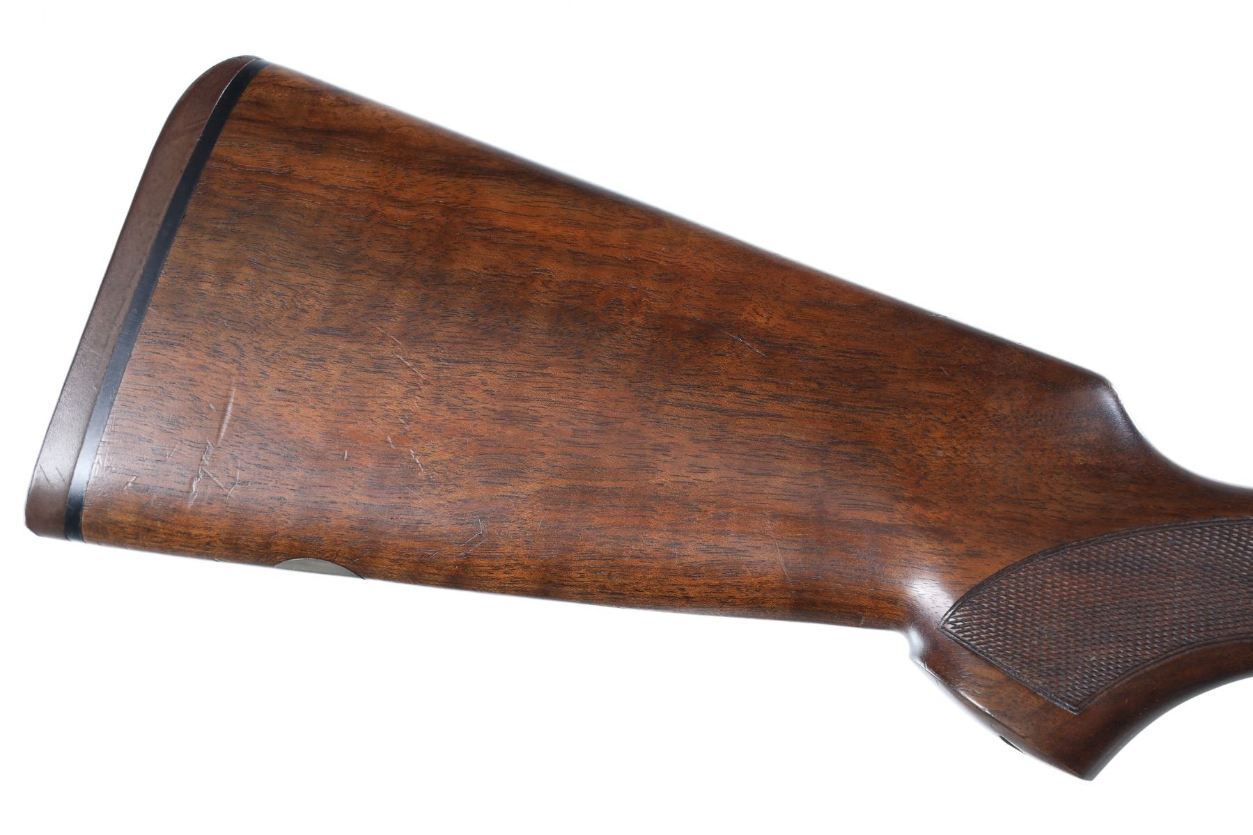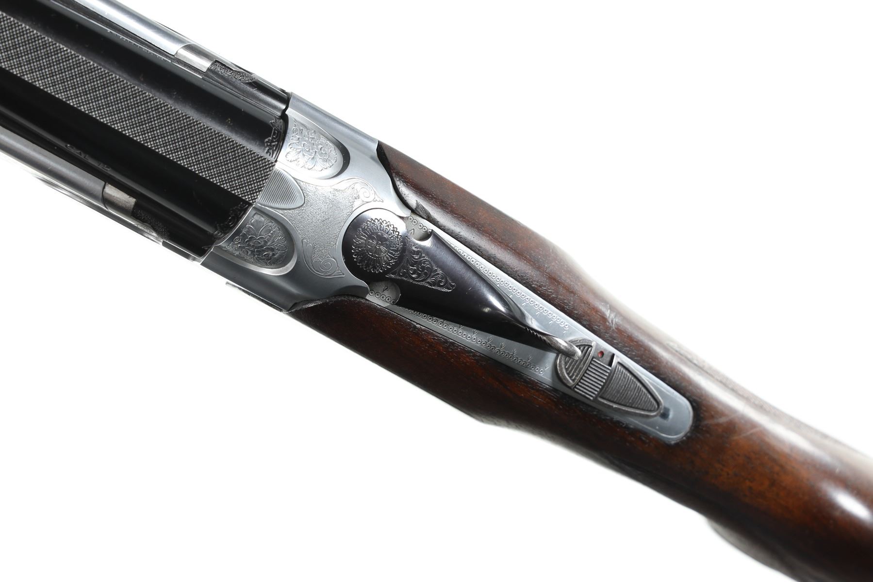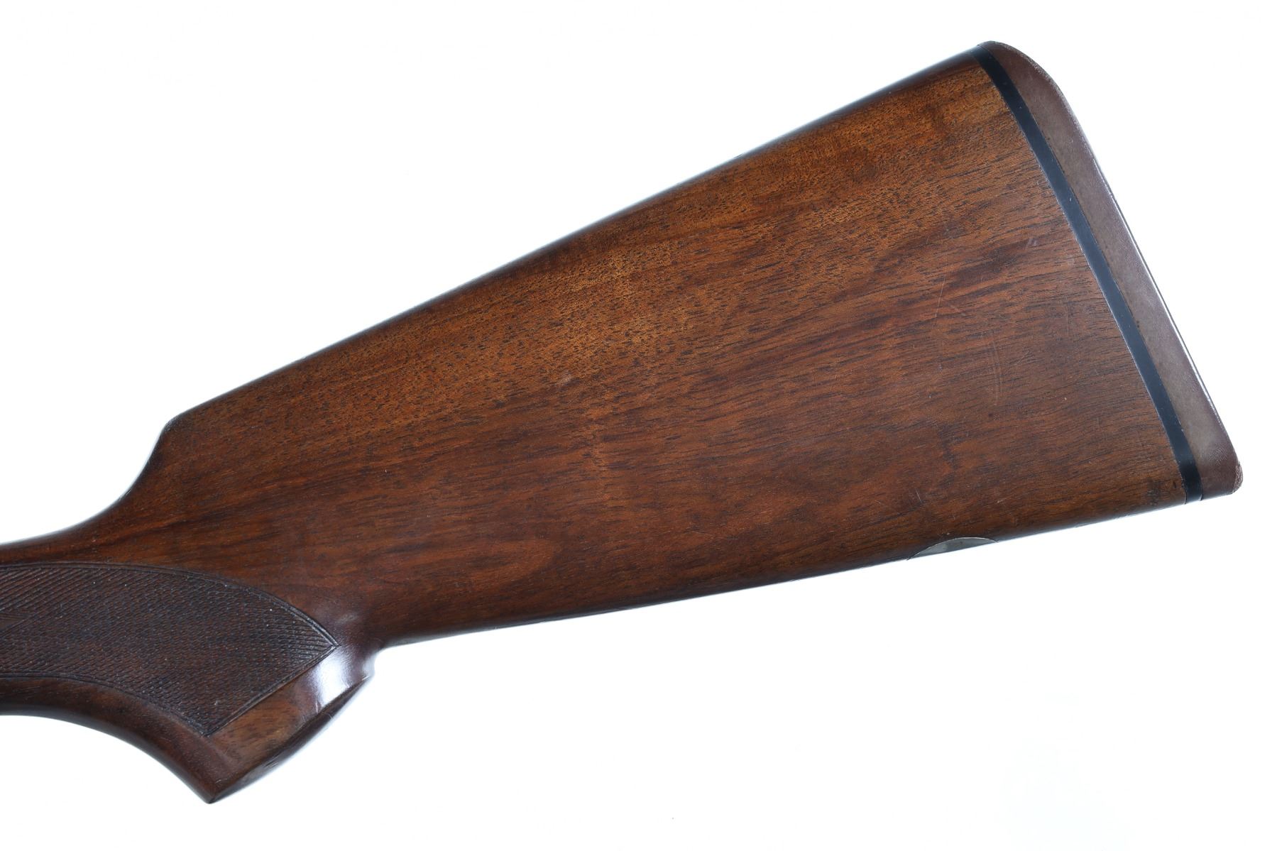12ga Serial # E54678B Choked Imp Cyl/Imp Mod. LOP 14 1/4", Drop 1 3/4"; 2 1/2". Single selective trigger with ejectors. Blue barrels with vent rib, coin finished receiver with Beretta rose and scroll engraving, oil finished checkered pistol grip stock. Very fine overall condition with English reblacked barrels. Stocks are excellent with minor impressions. Mechanically excellent. Mfg in 1985 Barrel 29 1/2" Modern