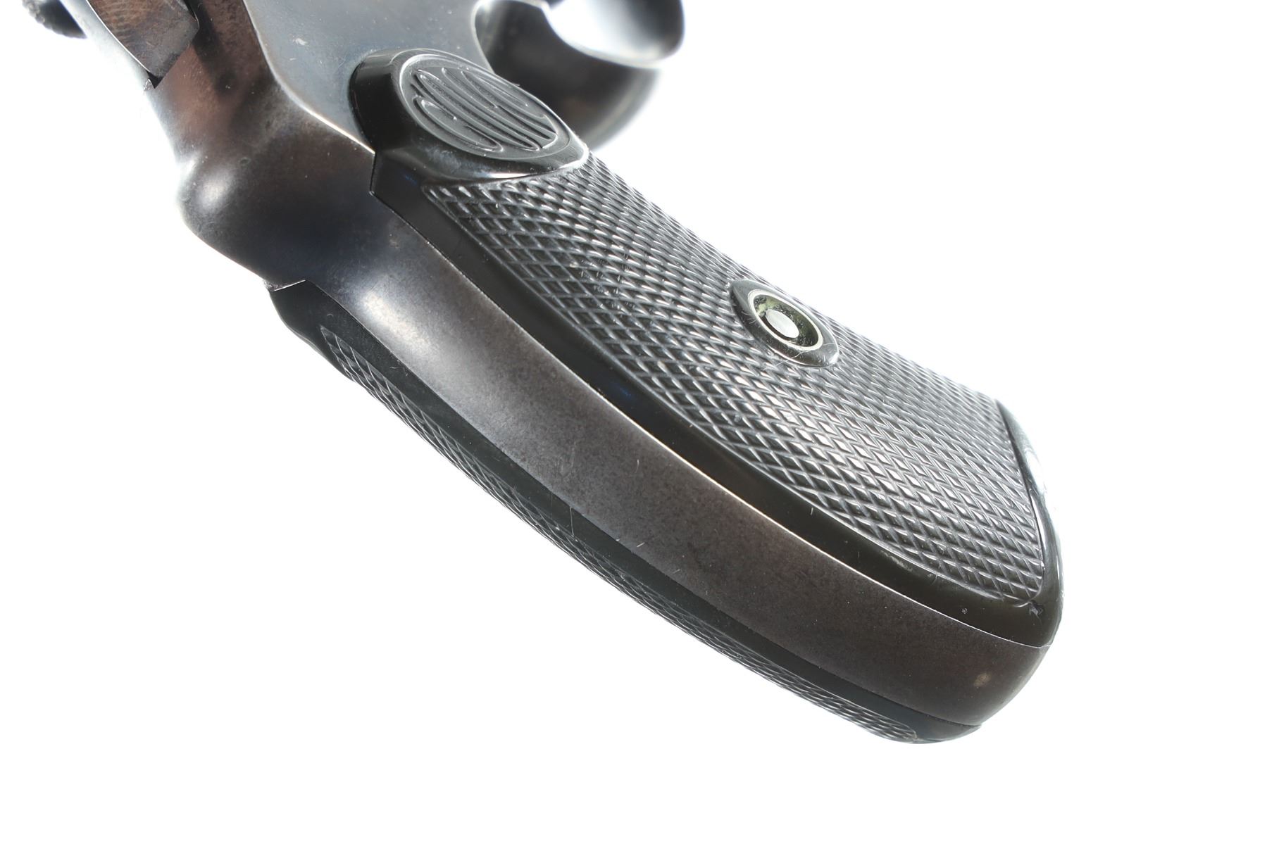 .32 police Serial # 148158 Blue finish with factory grips. Fine overall condition with slight finish loss and 2 small chips at toe of grips. Barrel 2 1/2" C&R