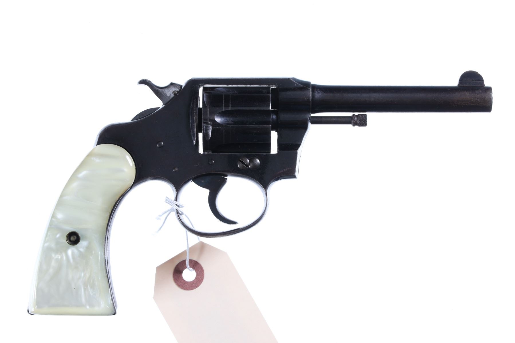 .32 police Serial # 99536 Very good with an abundance of factory blue finish mixed with plum patina, good bore and chambers with attractive Jay Scott pearl lite grips, mechanically excellent. Manufactured in 1914. Barrel 4" C&R