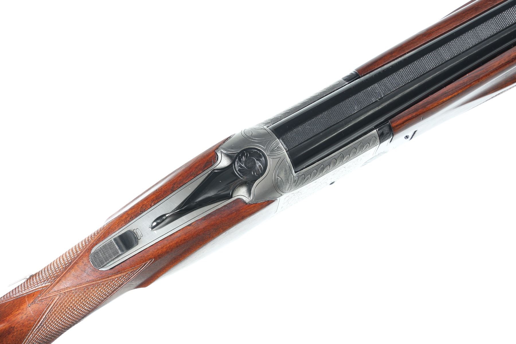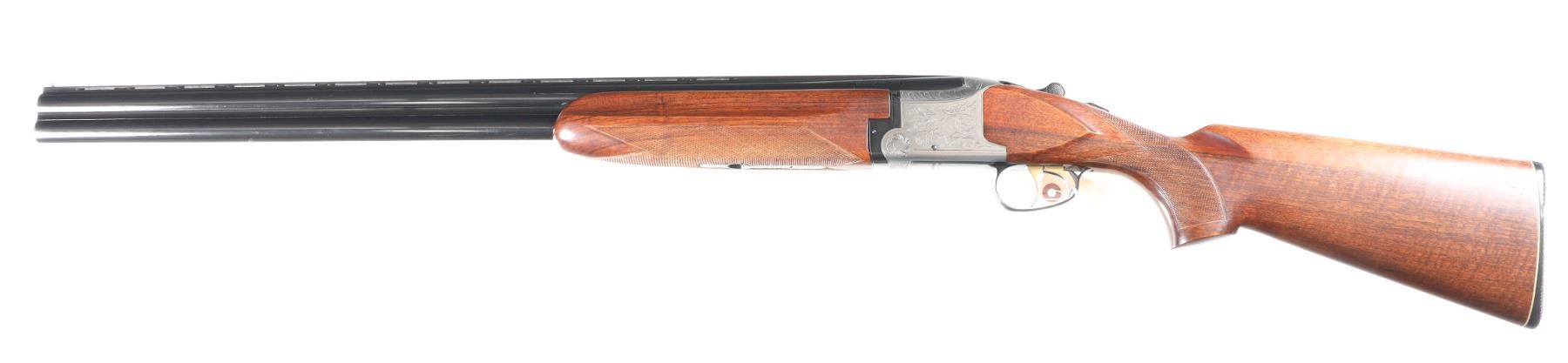 12ga Serial # 203773 Laurona Spanish over under 12 Ga, shotgun with double triggers and lifter extractors. Coin finished receiver with varnished checkered pistol grips stocks. Excellent overall condition with minor handling marks. Choked Full/Mod, 3" chambers, LOP 14 1/2". DAC 1 1/2" DAH 2 3/8". Mechanically excellent. Barrel 28" Modern