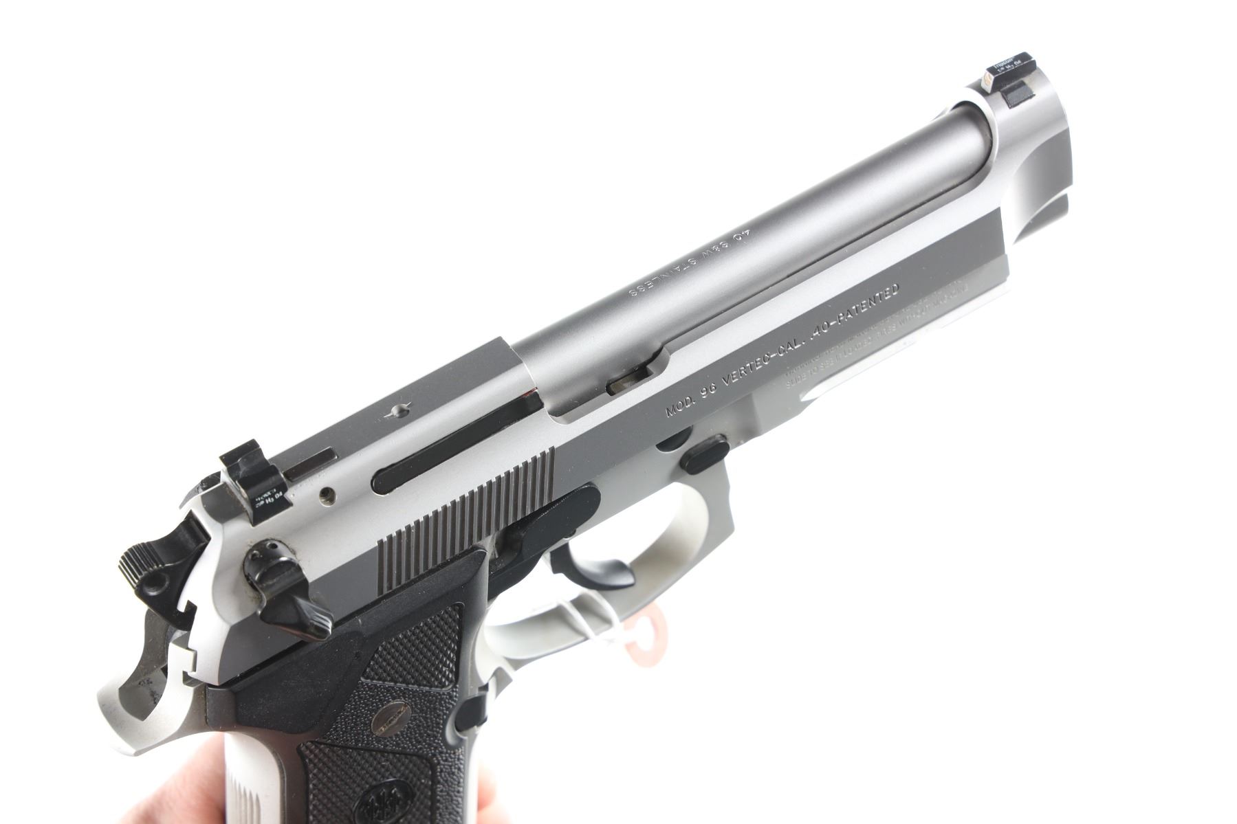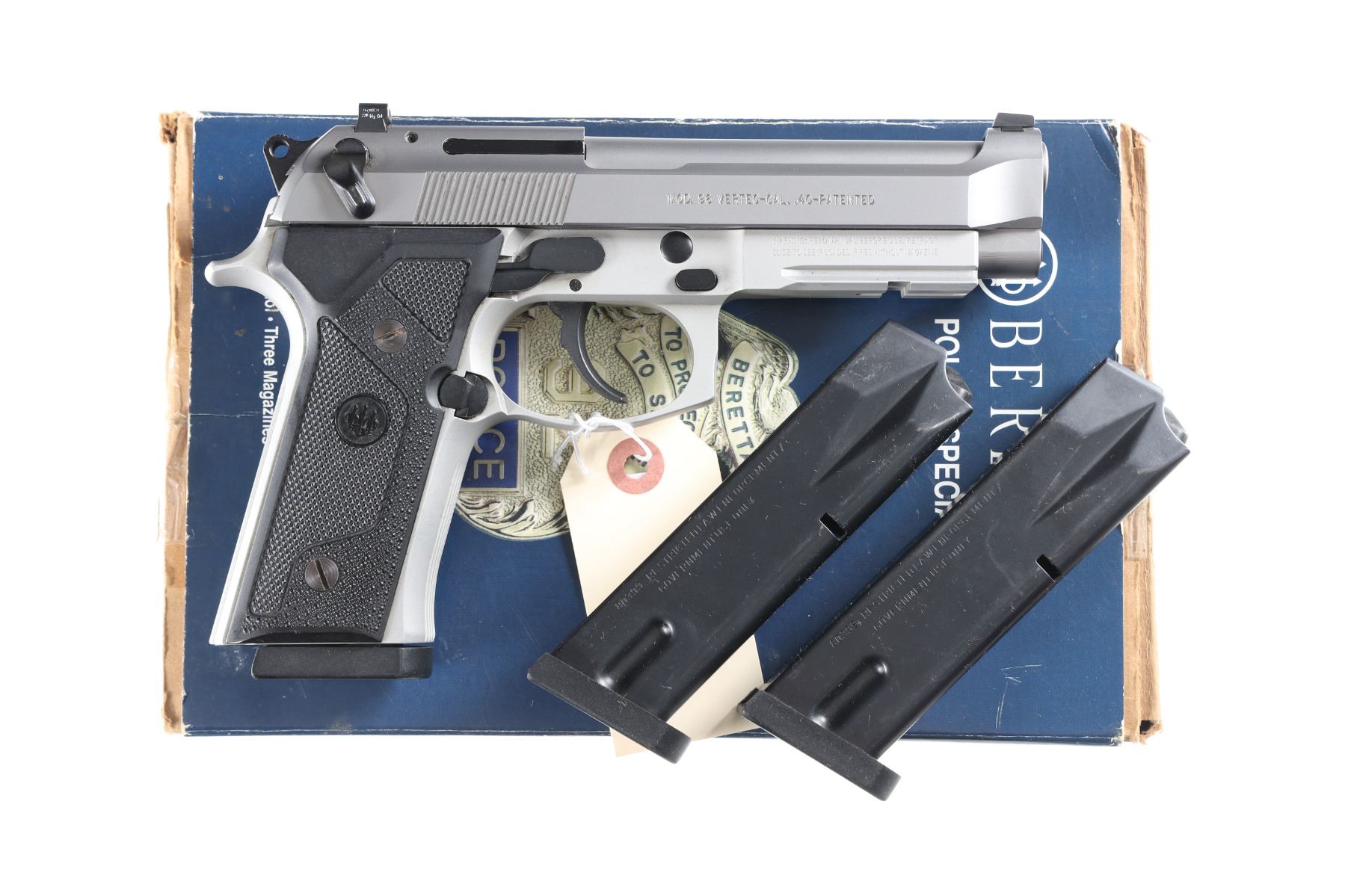 .40 s&w Serial # BER334713 Near new overall condition with light handling marks, with factory night sights and original factory box numbered to gun, with 3 factory 11rd magazines. Stainless steel. Barrel 4 5/8" Modern