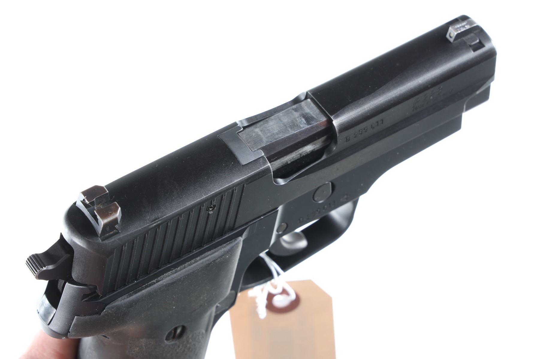 9mm Serial # B239611 Fine overall condition with slight holster wear. Factory night sights with Hogue rubber grips. Barrel 3 5/8" Modern