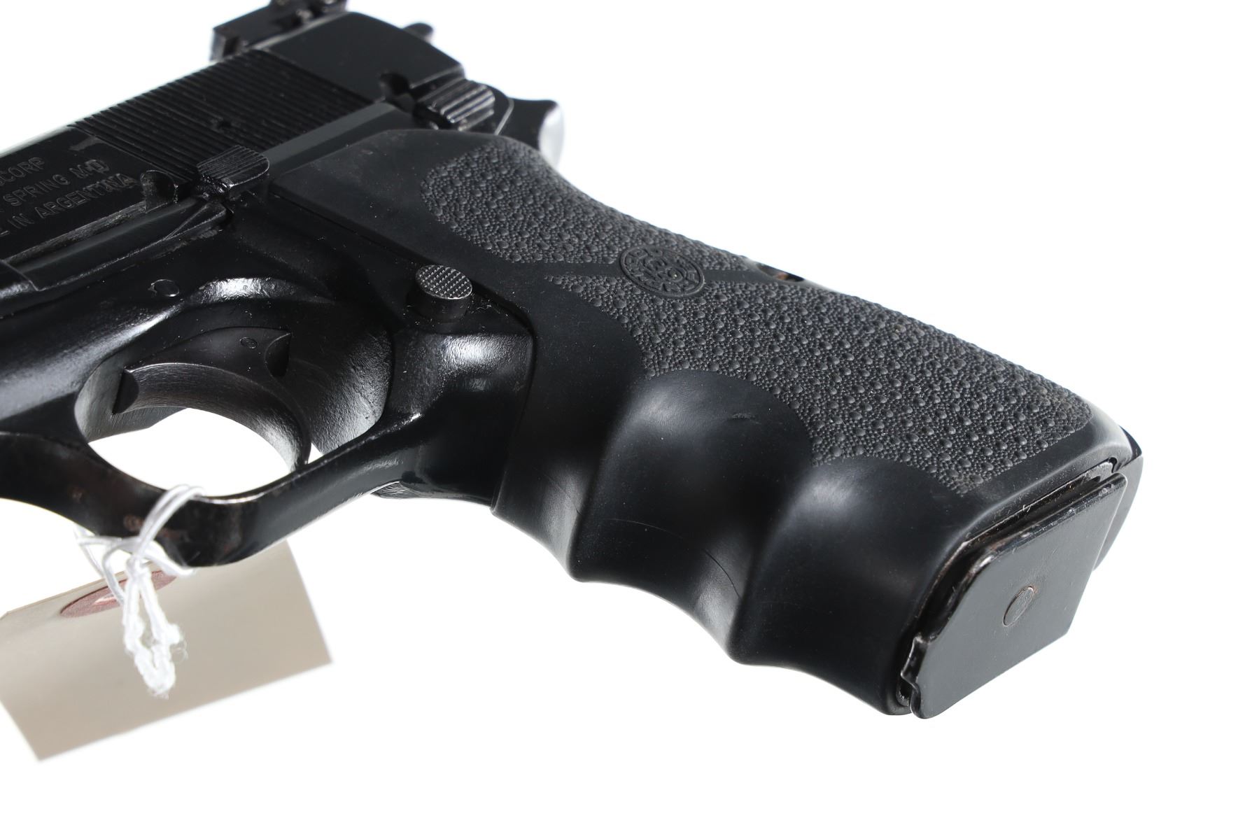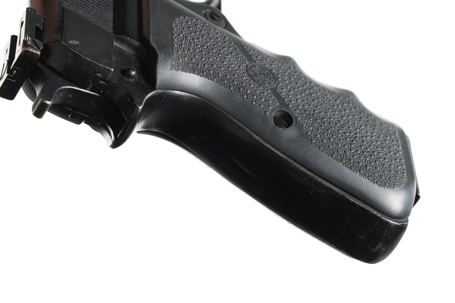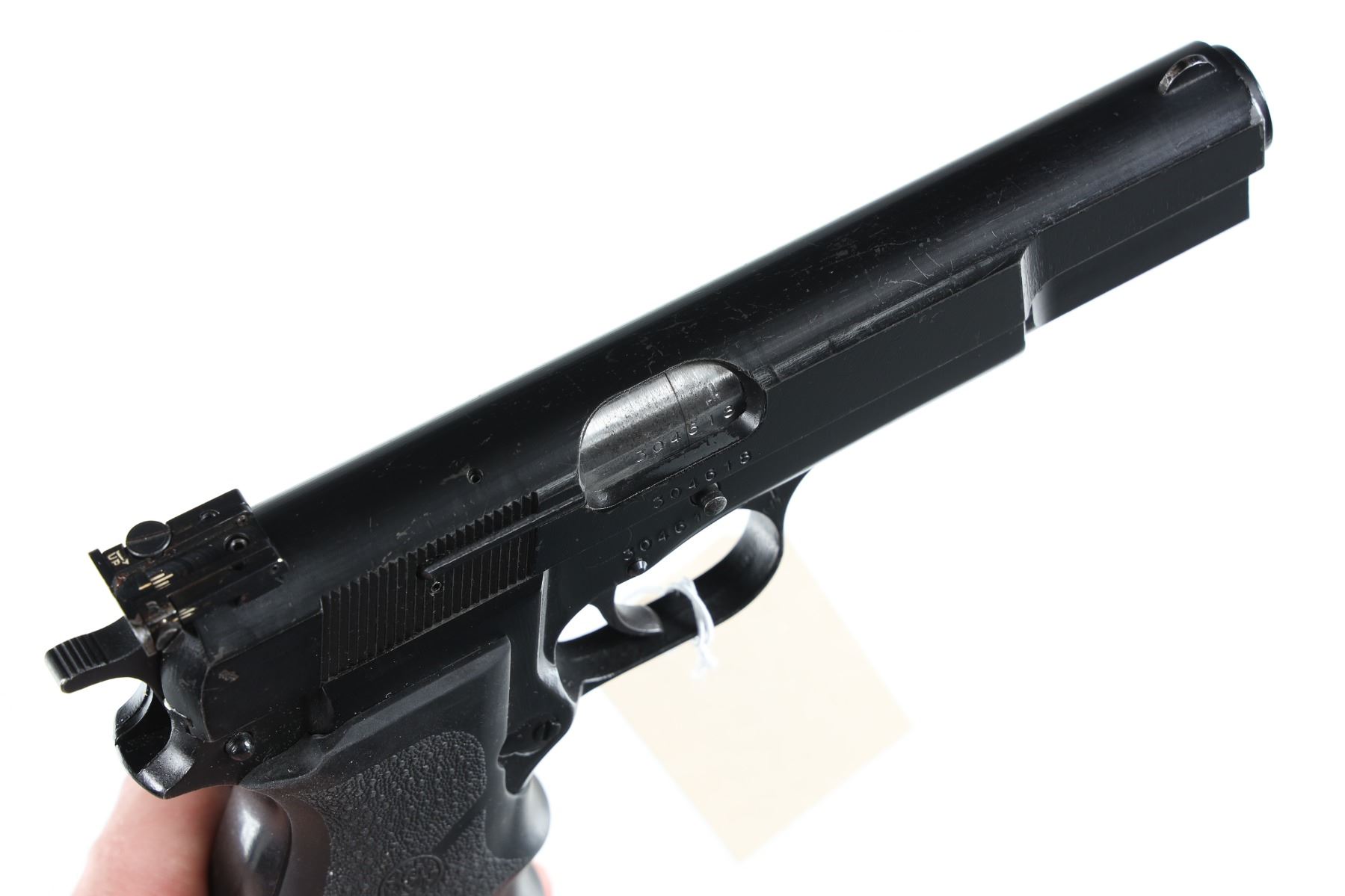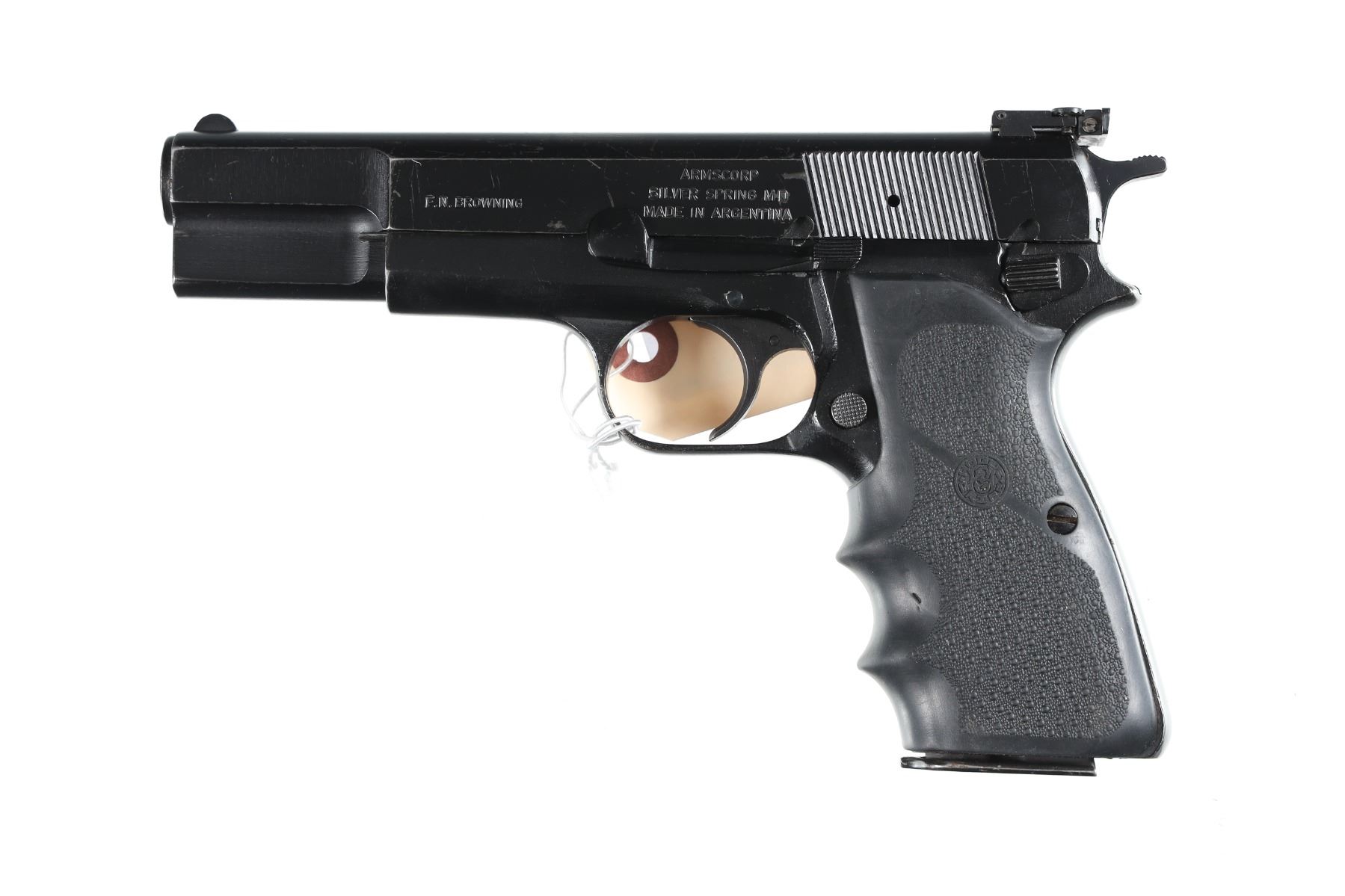 9mm Serial # 304618 Black epoxy finish, fixed front sight with MMC micro adjustable rear sight, Hogue rubber grips, Argentine copy of Browning Hi Power. Fine overall condition, minor finish loss, mechanically excellent. Barrel 4 5/8" Modern