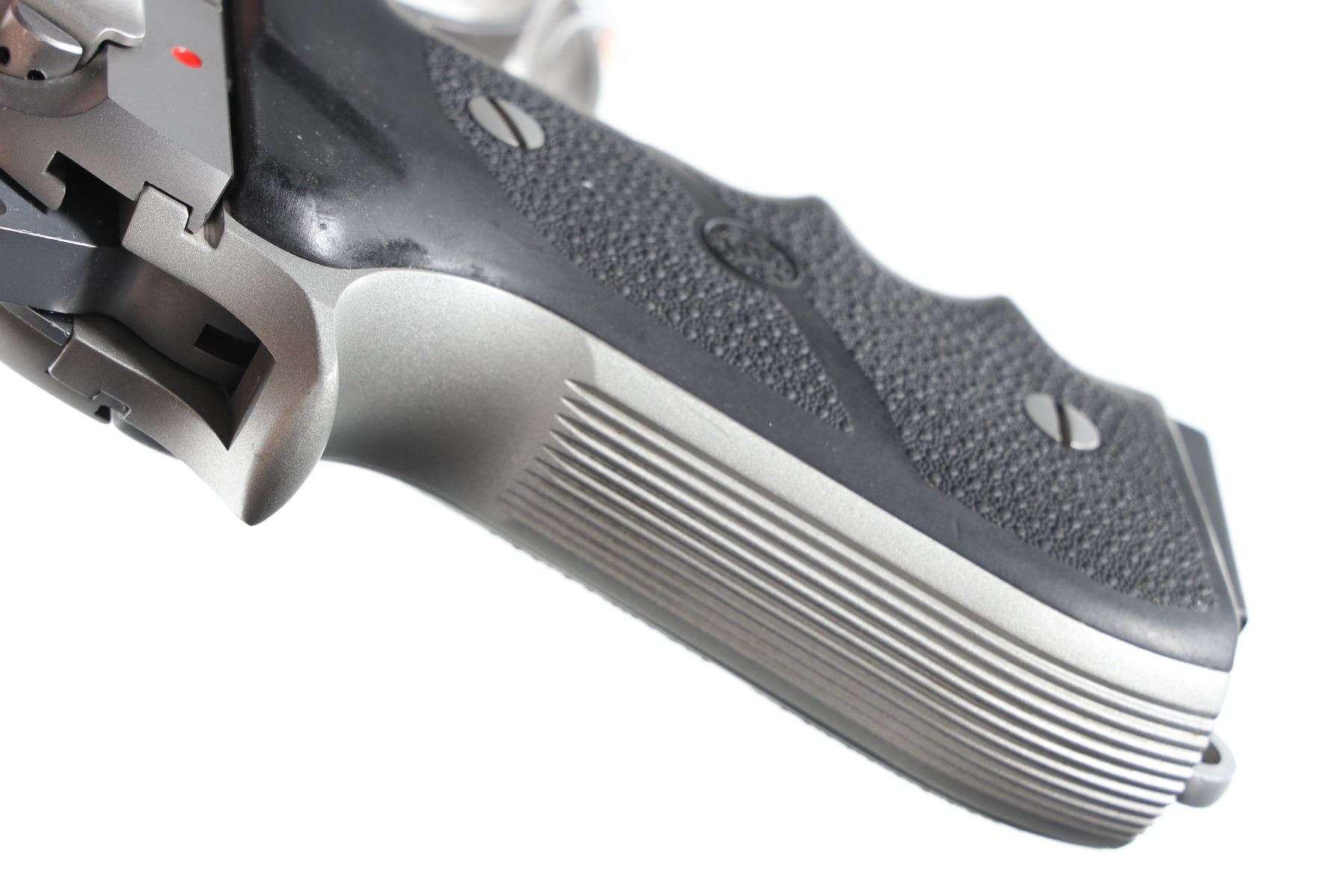 9mm Serial # M58901Z Stainless steel and alloy frame, 3 dot sights, Hogue replacement grips, very fine overall condition with slight finish loss on frame. Sight has scratches on sides, mechanically excellent. Barrel 5" Modern
