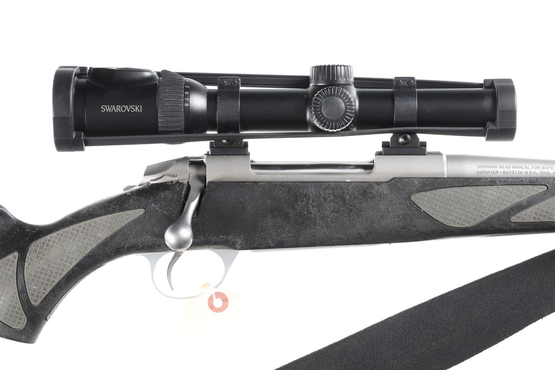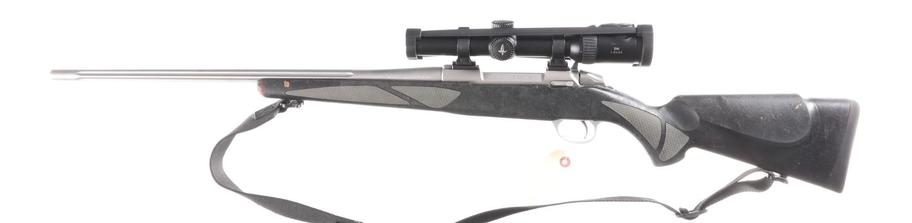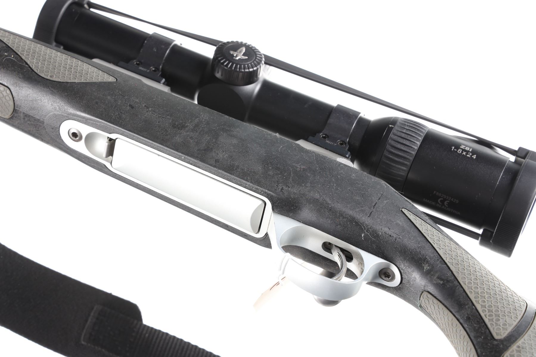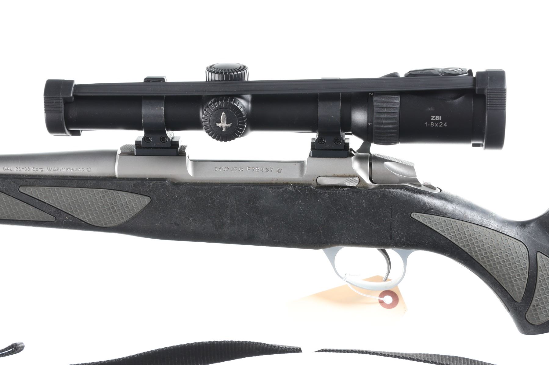 .30-06 Serial # F72687 Sako Of Finland Model 85 with synthetic stock and chambered for 30-06. Metal surfaces rate excellent, entire composite surface tacky, Swarovski Z8i 1-8x24 scoped. Very fine with a few handling marks. Optics are brilliant bright and clear. Mechanically excellent. Barrel 22" Modern