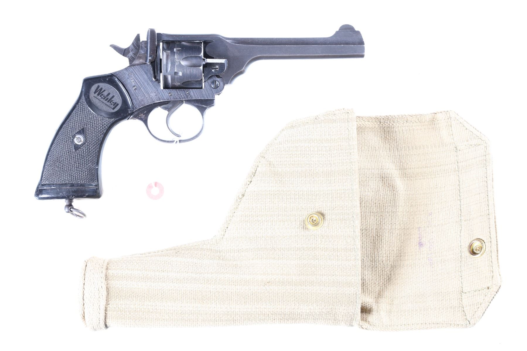 .38/200 cal Serial # 150570 Near excellent overall condition, receiver marked "War Finish" with British proofs, with holster. Mechanically excellent. Barrel 5" C&R