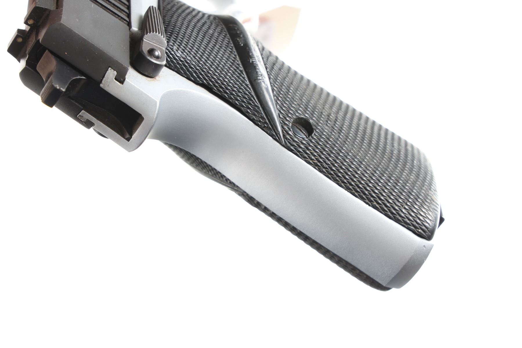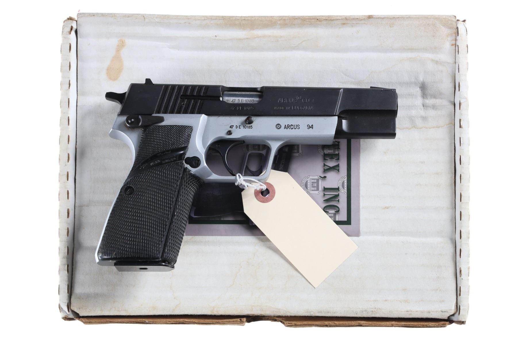 9mm Serial # 47DE10185 Blue and nickel finishes, Bulgarian copy of Browning Hi Power. Excellent overall condition with factory box numbered to gun. Barrel 4 5/8" Modern