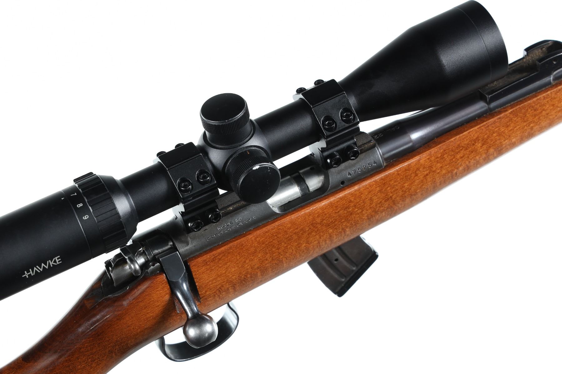 .22 lr Serial # 475254 Varnished hard wood pistol grip stock with 3x9 variable Hawke scope. Very fine overall condition with muzzle threaded for suppressor. Mfg in 1993 Barrel 24 1/2" Modern
