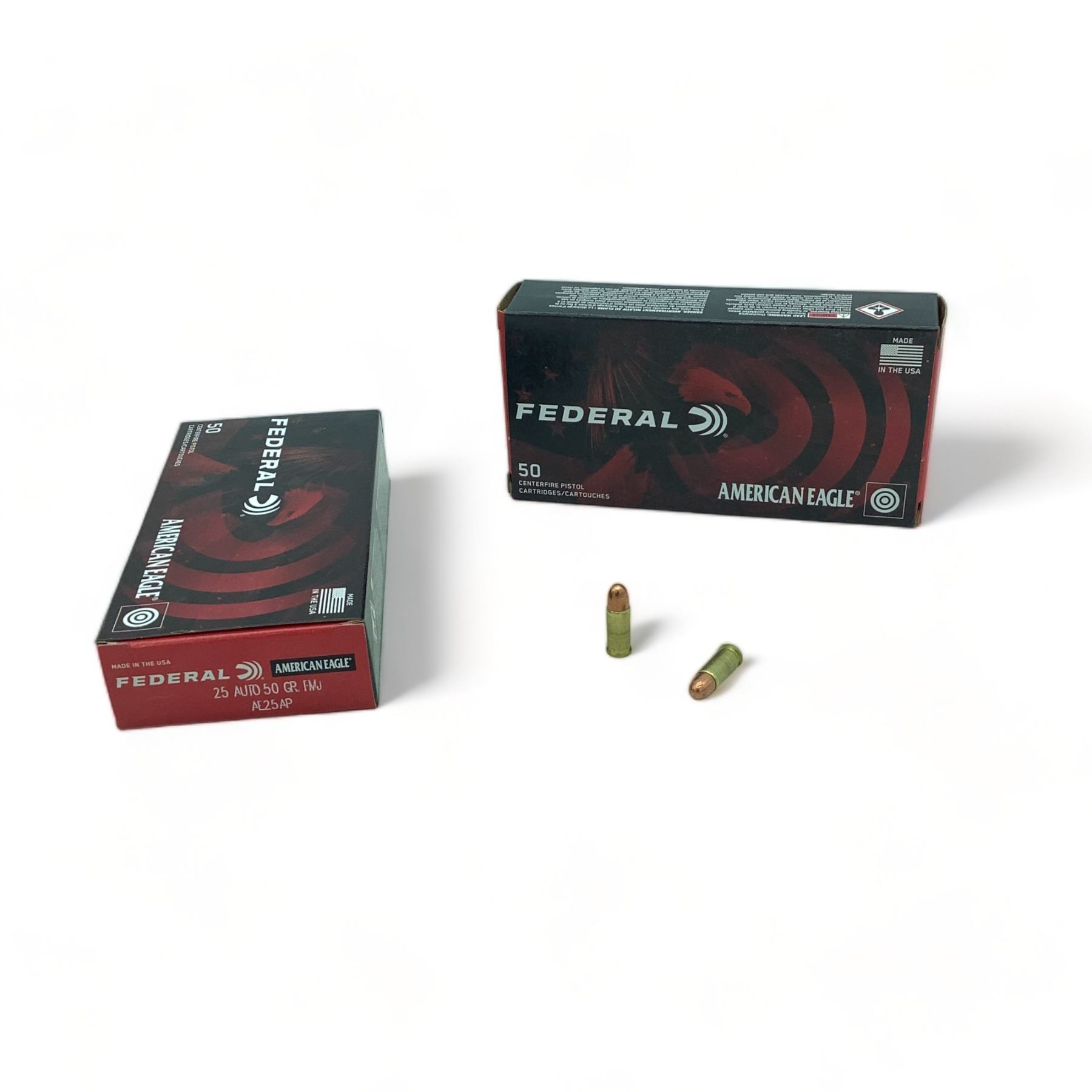 Lot 2425 Federal American Eagle 25 Auto 50 Grain FMJ Ammunition, 100 Rounds