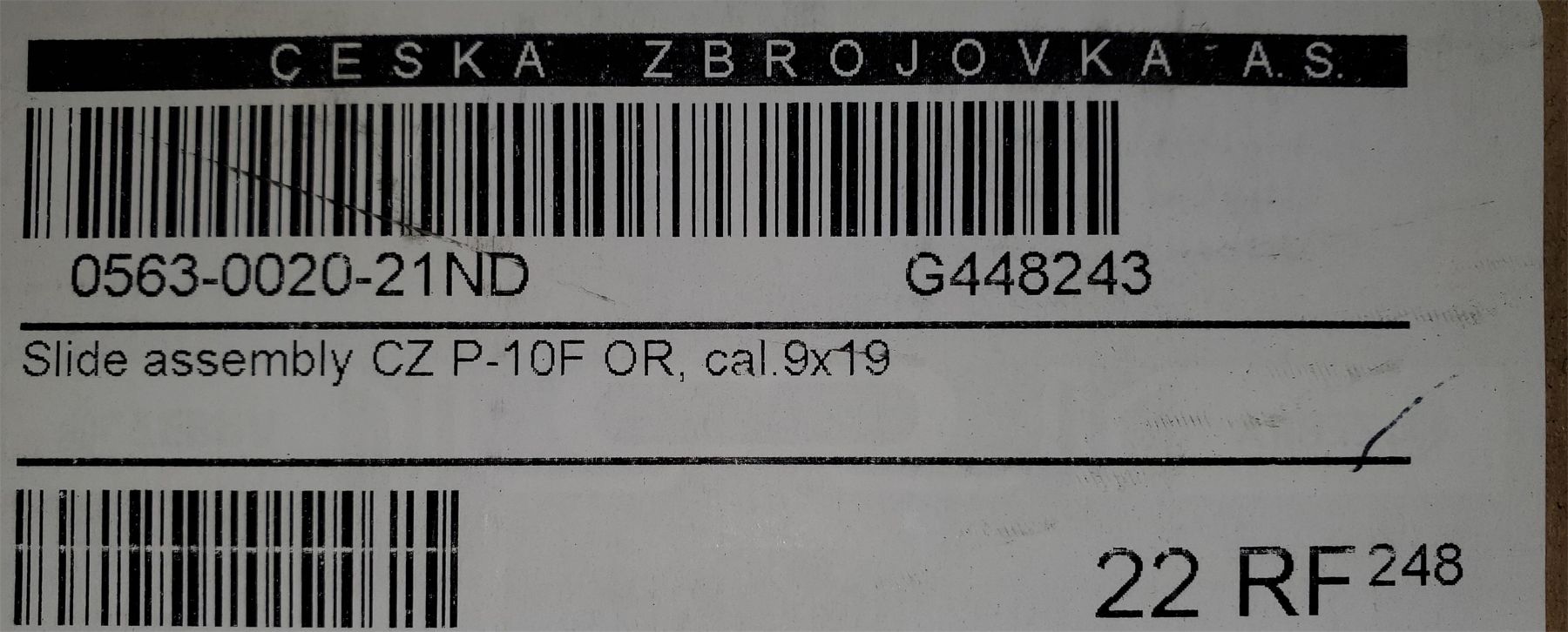 Lot 70 CZ P-10F Slide Assembly Cal. 9x19 (Optic Ready)