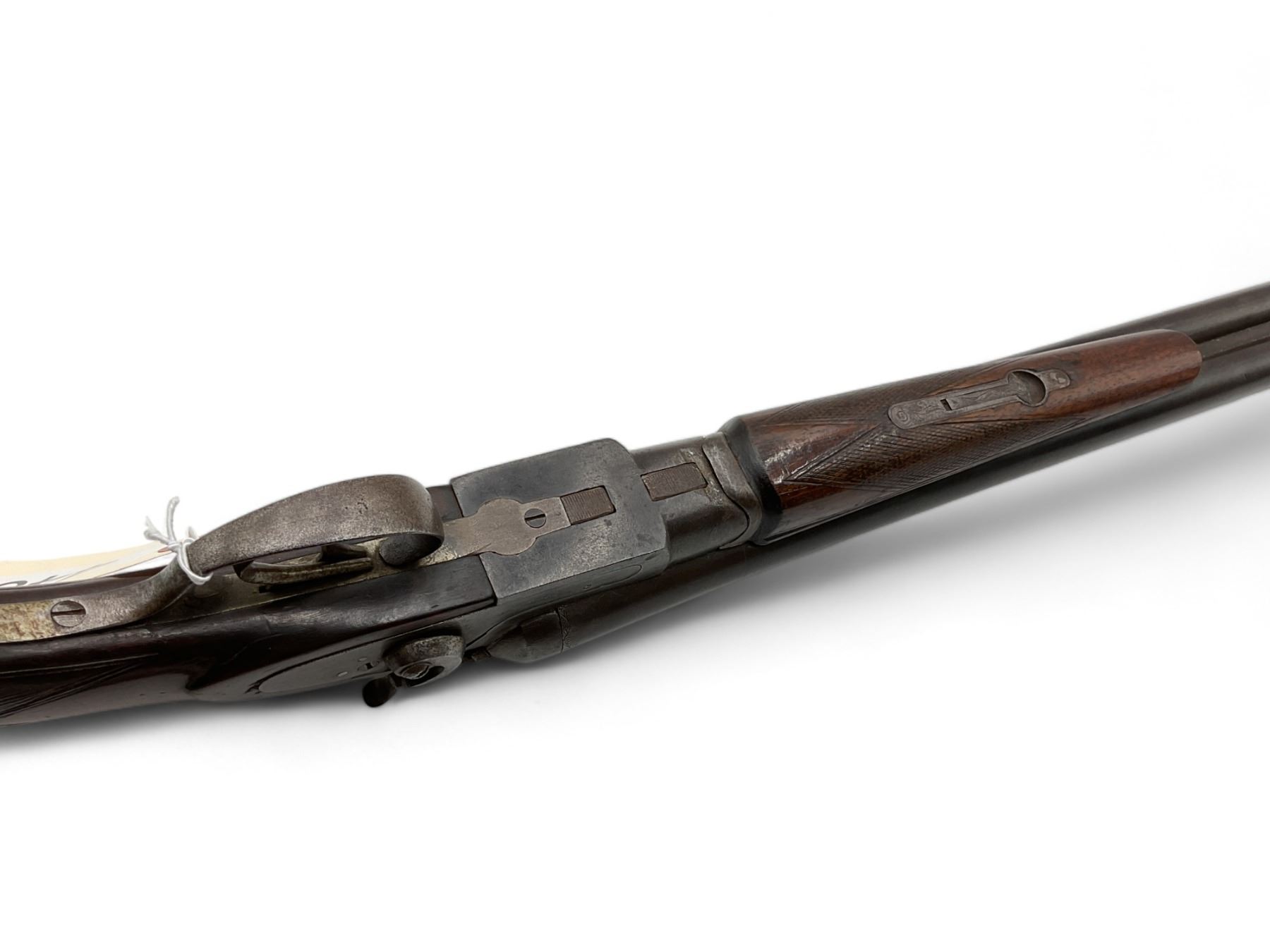 Neuman Brothers Side By Side 12Ga Shotgun 30" Barrels Wood Stock. Bead sight, fixed chokes. Exposed hammers; Left hammer will not lock back. This is a non-restricted firearm.