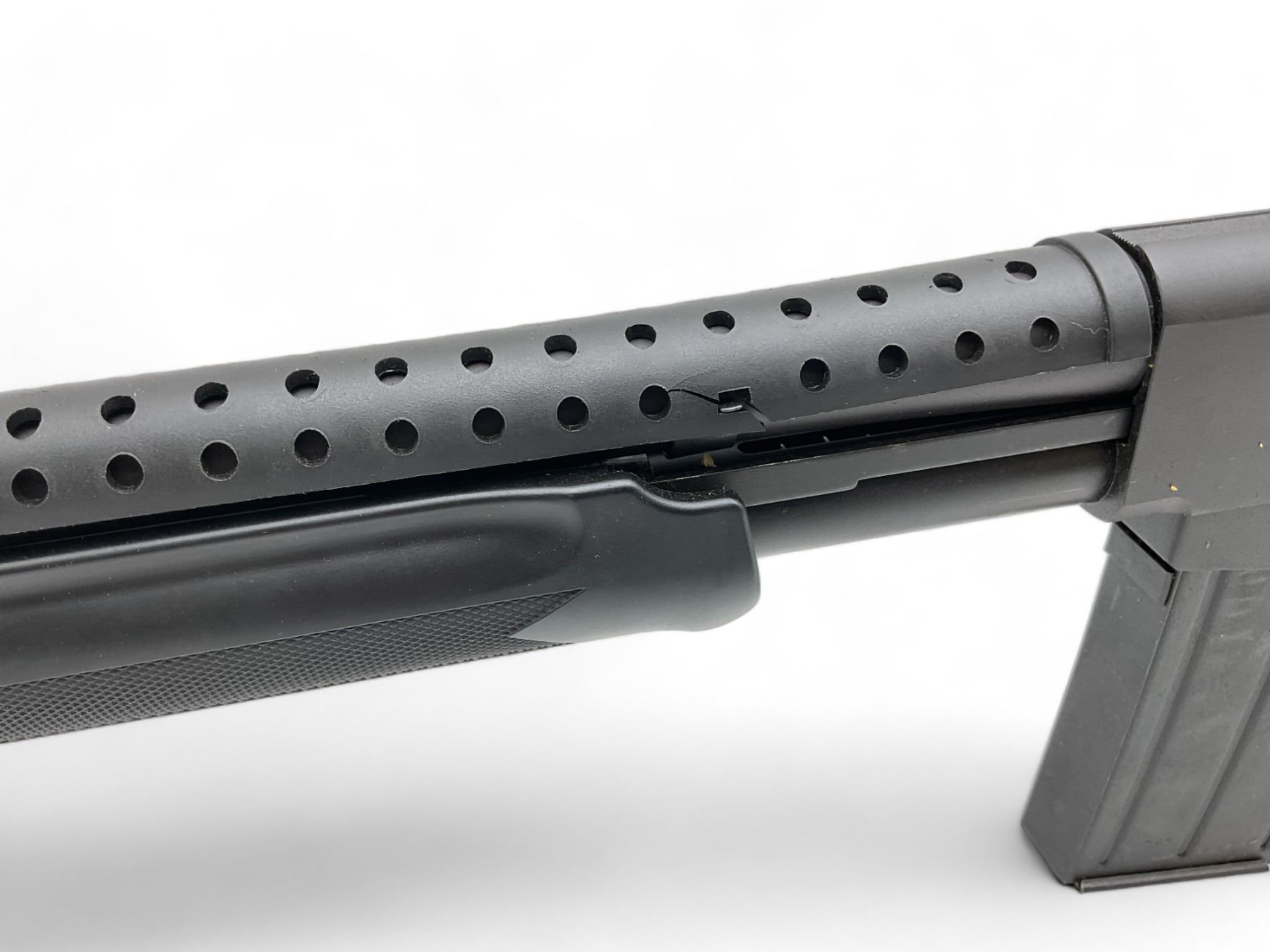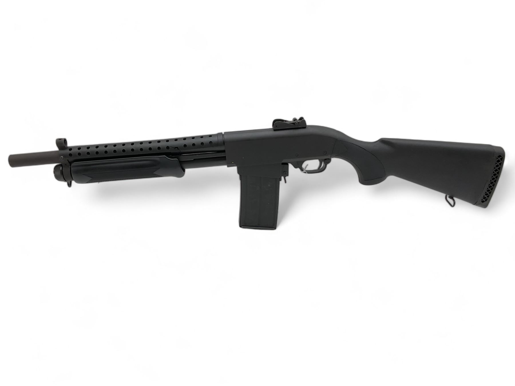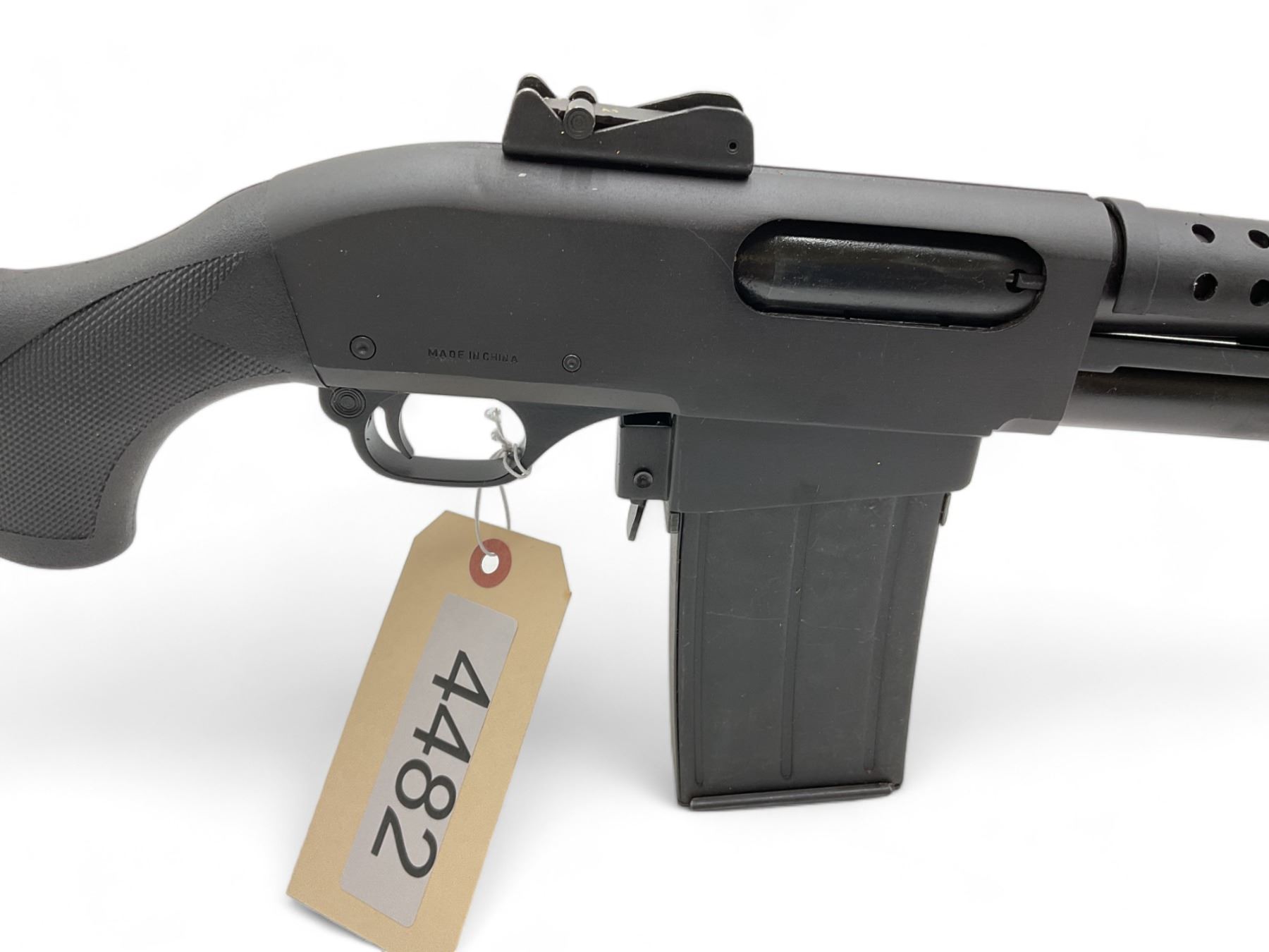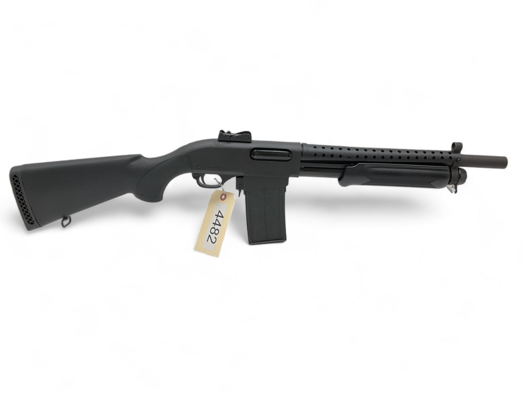 Norinco YJ12-2 Pump Action 12Ga Shotgun 2.75" Chamber 15" Barrel Black Synthetic Stock. Includes one detachable magazine. Heat shield is cracked and broken. Hooded front sight, adjustable rear sight. This is a non-restricted firearm.