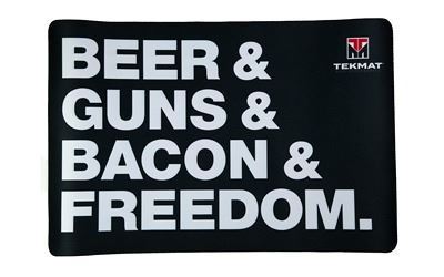 TekMat, Original Mat, Beer & Guns & Bacon & Freedom, Thermoplastic Surface Protects Gun From Scratching, 1/8" Thick, 11"x17", Tube Packaging, Black with White Lettering